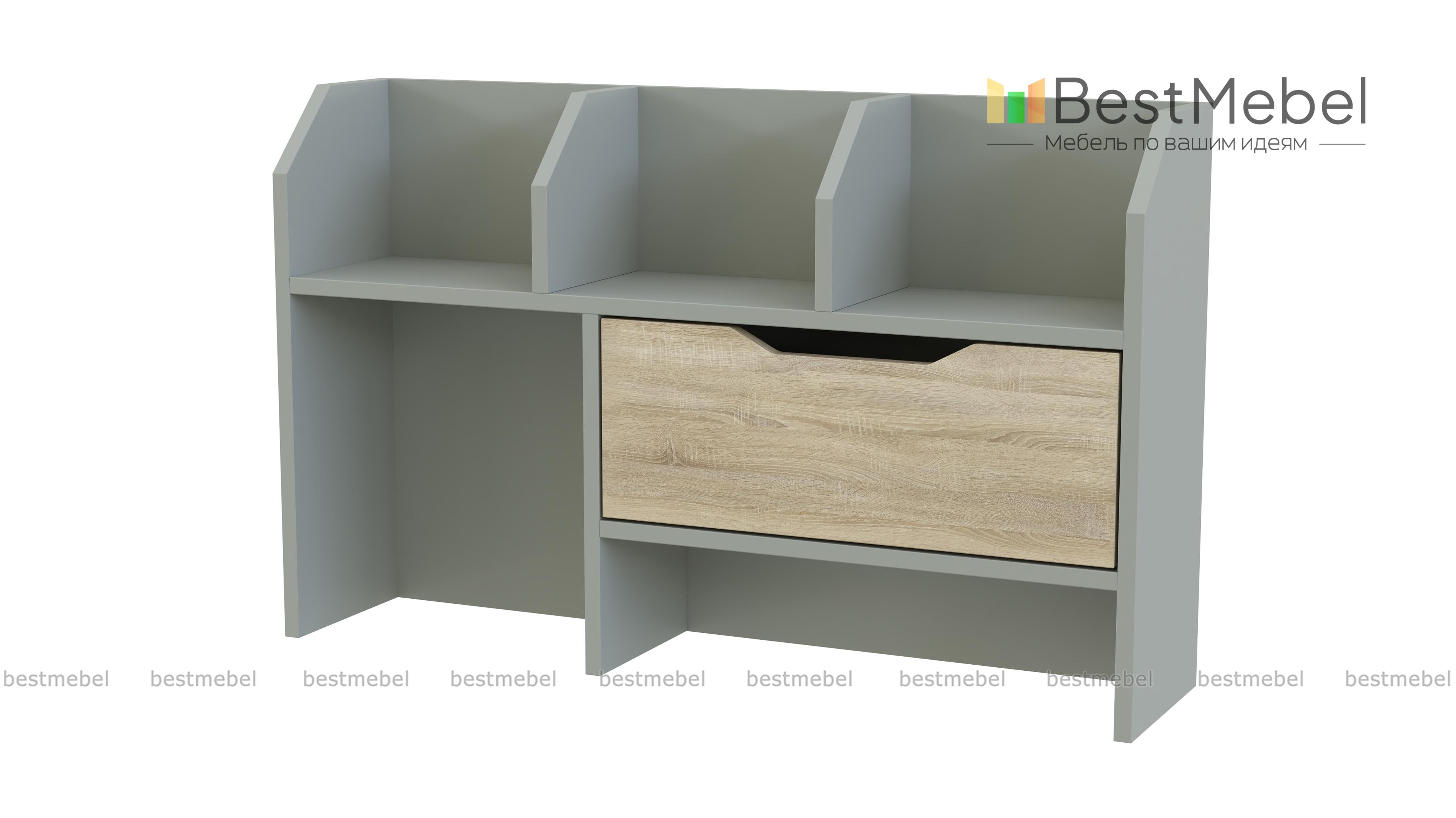 Надставка для стола Дуо 7 BMS поможет сделать рабочий процесс максимально комфортным. Удобный органайзер оборудован открытой полочкой со скошенными разделительными перегородками, выдвижным ящиком с ручкой-вырезом и нишами. Продуманная конструкция позволит вам компактно разместить книги, папки, канцелярские принадлежности и декоративные мелочи. Купить надставку для стола Дуо 7 BMS по привлекательной цене вы сможете в нашем интернет-магазине.