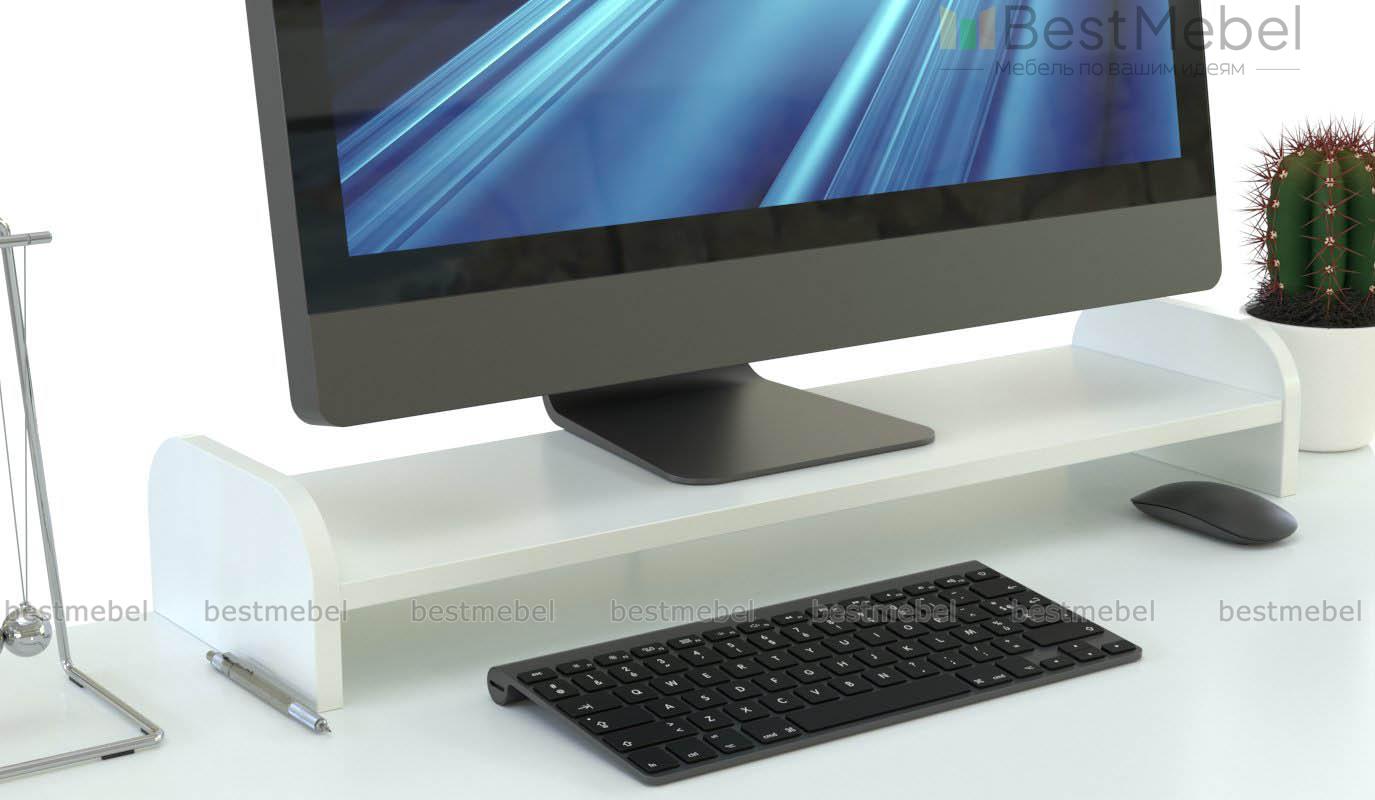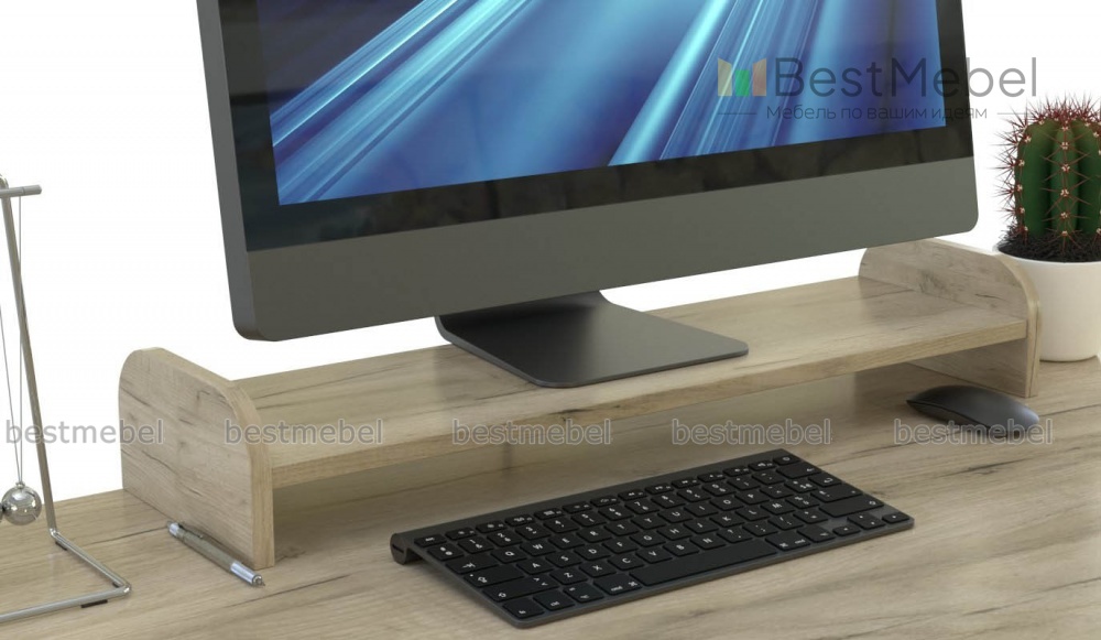 Подставка под монитор Лаф-16 BMS имеет настольную конструкцию и представляет собой открытую полку. Надежная и устойчивая, модель выполнена из ЛДСП в тон корпусу и располагается на широких скругленных опорах. Вы сможете как установить на комфортной высоте монитор, так и разместить в нише под столешницей клавиатуру, бумаги и канцелярские мелочи. Купить подставку под монитор Лаф-16 BMS приглашаем в наш интернет-магазин с возможностью изготовления по индивидуальным размерам.