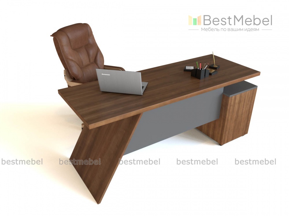 Стол руководителя Ирван BMS станет центром ультрасовременного офиса в стиле хай-тек. Эффектные геометричные формы модели подчеркивает контрастное сочетание древесных тонов и модных графитовых вставок, лицевая панель – с 3D рельефом. Просторная прямоугольная столешница позволит разместить все необходимое для работы, а для документов и личных вещей предусмотрена боковая опорная тумба. Стильный акцент конструкции – скошенная боковина. Купить стол руководителя Ирван BMS по отличной цене приглашаем в наш интернет-магазин.
