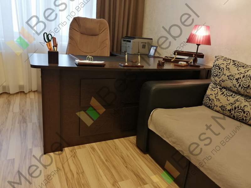 Покупал в Бестмебели стол руководителя Монти BMS. Цвет фасадов и корпуса - Венге Цава. Пользуюсь около месяца, поэтому отзыв уже взвешенный, без первых эмоций.Понравилось, что стол можно скомпоновать именно в тех размерах и той комплекции, которые нужны. Все это делается в интуитивно понятном калькуляторе на сайте. Конкретно для этой модели есть 3D визуализация. Выбранный мной размер - 1900*750*800. Скругленые столешницы. Доводчики на нариковых направляющих. Кромка 0,4 мм. Крепеж стандартный. Заказ оформили, все обговорили. Срок от момента заказа до доставки получился чуть меньше 3 недель. Привезли и донесли до квартиры. Понравилось, что за это время отзванивались раз 5. Дополнительно уточняли какой вынос и ширина приставки к столу предпочтительнее для меня; сообщали на каком этапе изготовления/доставки сам стол.Собрал сам часа за 2. Собирал сам, помощь не трубуется. Инструкция может не сильно информативна, потому что деталей много, изображение мелкое, в объеме, поэтому перекрывает различные части, но на каждой детали есть наклейка с названием и размерами. Первый раз такое вижу, удобно и опять-таки интуитивно понятно. Все присадки находятся на своих местах! Это, наверное, первая мебель, которую я собирал и ничего не сверлил и не "допиливал" руками))Брака не было, на одной кромке присутствовал небольшой скол, но не на лицевой части. Фурнитура была вся в наличии, даже был какой-то пакет явно от другого стола, но это мелочи, главное, что для моего всего хватило.Так в целом, стол выглядит и ощущается весьма качественно. Ничего нигде не гуляет, не скрипит, все закрывается. Стоимость нет смысла писать потому, что все меняется и через месяц она может быть не актуальна. Плюс, у каждого стола в разных комплектациях она отличается. На момент покупки для стола с такими размерами и с таким наполнением она была самой адекватной из примерно трах десятков, которые я пересмотрел. В общем и целом, стол к покупке рекомендую.