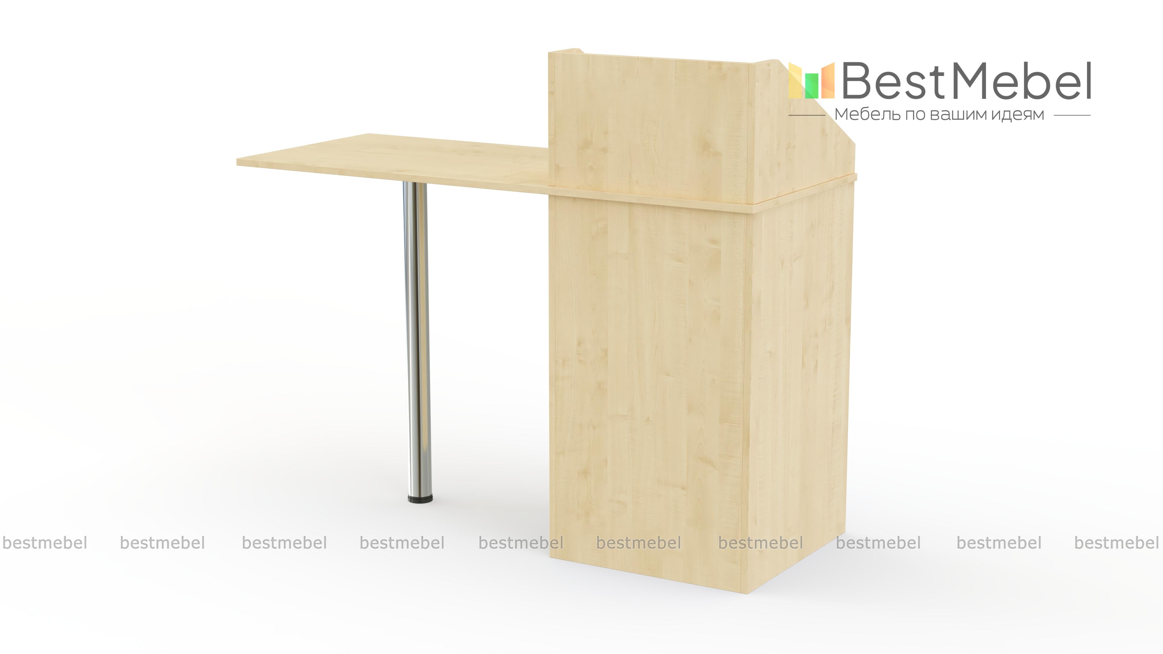 Стойка ресепшн СП-1 BMS создана для администратора, который удобно расположившись за ней, сможет вести прием посетителей. Она будет хорошо смотреться в небольшом уютном помещении. Ее легкая конструкция не загромоздит пространства. Эффектно выглядит красивой формы хромированная ножка, а теплый цвет натурального дерева призван создать атмосферу благородства и респектабельности. Чтобы стойка выглядела гармоничным элементом интерьера, она должна отвечать специфическим особенностям помещения. Поэтому мы предлагаем нашим клиентам самостоятельно подбирать на сайте все параметры выбранной модели. Оформить заказ на недорогое качественное изделие очень просто в режиме онлайн.
