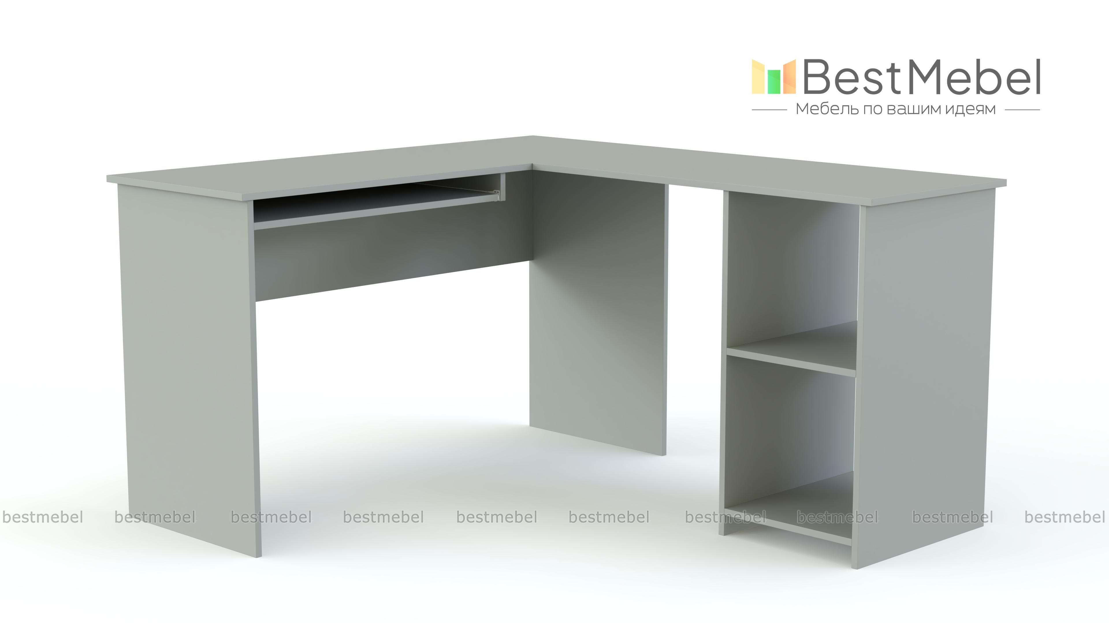 Угловой стол Diego BMS состоит из двух столешниц, расположенных под прямым углом друг к другу. На одной из них удобно работать на компьютере, для клавиатуры предусмотрена выдвижная панель. Другая часть столешницы интегрирована с двумя открытыми полками. Модель может стать удачным решением обустройства офисных помещений небольшой площади, хорошо будет смотреться в молодежной комнате. Возможны многочисленные варианты расцветки мебели. Один из них вы можете выбрать на нашем сайте и заказать с выгодной скидкой стильный стол Diego BMS с бесплатной доставкой.