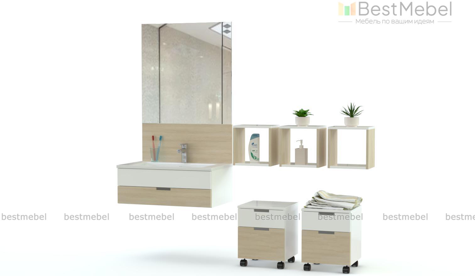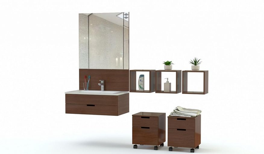 Мебель для ванной комнаты Августин 4 BMS отличается современным дизайном и функциональностью. Входящие в комплект модули легко компонуются друг с другом, помогая вам подобрать наиболее комфортный вариант. Композиция в теплых древесных тонах включает в себя навесную тумбу под раковину с выдвижным ящиком, две мобильные тумбы, зеркало и открытые секции кубической формы для удобного хранения базовых гигиенических принадлежностей. Купить мебель для ванной комнаты Августин 4 BMS приглашаем в наш интернет-магазин.
