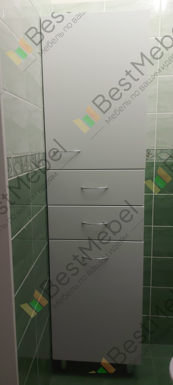 Это мой 3-й. Пенал понравился и важно, что можно изменить размеры, цвет..Команда работает быстро и очень корректно общаются с заказчиком.На всех этапах поддержка работает, чуть ли не круглосуточно. Заказ незначительно был изменён только ширина 50 см. Консультант предложила другие навесы (?) для дверц, объяснив их преимущество.Доставка была тоже быстрой, водитель занёс в квартиру, всё было аккуратно упаковано.Сборка в удобное время на следующий день. Сборшик приятный молодой человек, работал просто красиво, никаких вопросов у меня даже не возникло. Всё снимается на видео. Пенал поставили в туалете место просто для него. Для хранения порошков, гелей и других хозяйственных пренадлежностей места достаточно. Организация на всех этапах отлажена до мелочей.Спасибо всем сотрудникам фирмы BestMebel. Особенно с кем общалась.С уважением Светлана