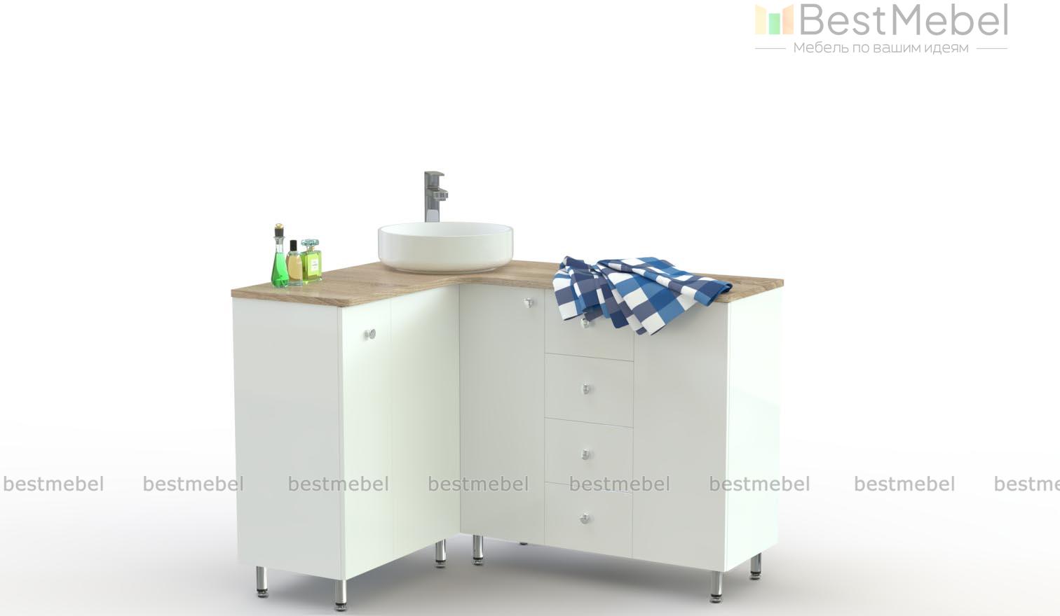 Тумба для ванной Эльза 6 BMS имеет практичную угловую конструкцию, а обтекаемые формы без острых углов эффектно смотрятся в современном интерьере. Глянцевая модель с просторной столешницей поможет эстетично вписать раковину и разместит бытовую химию, косметические принадлежности и прочие мелочи в распашных отделениях и выдвижных ящиках. Влагостойкие поверхности тумбы просты в уходе и долговечны. Купить тумбу для ванной Эльза 6 BMS и выгодно использовать особенности планировки вам поможет наш интернет-магазин.