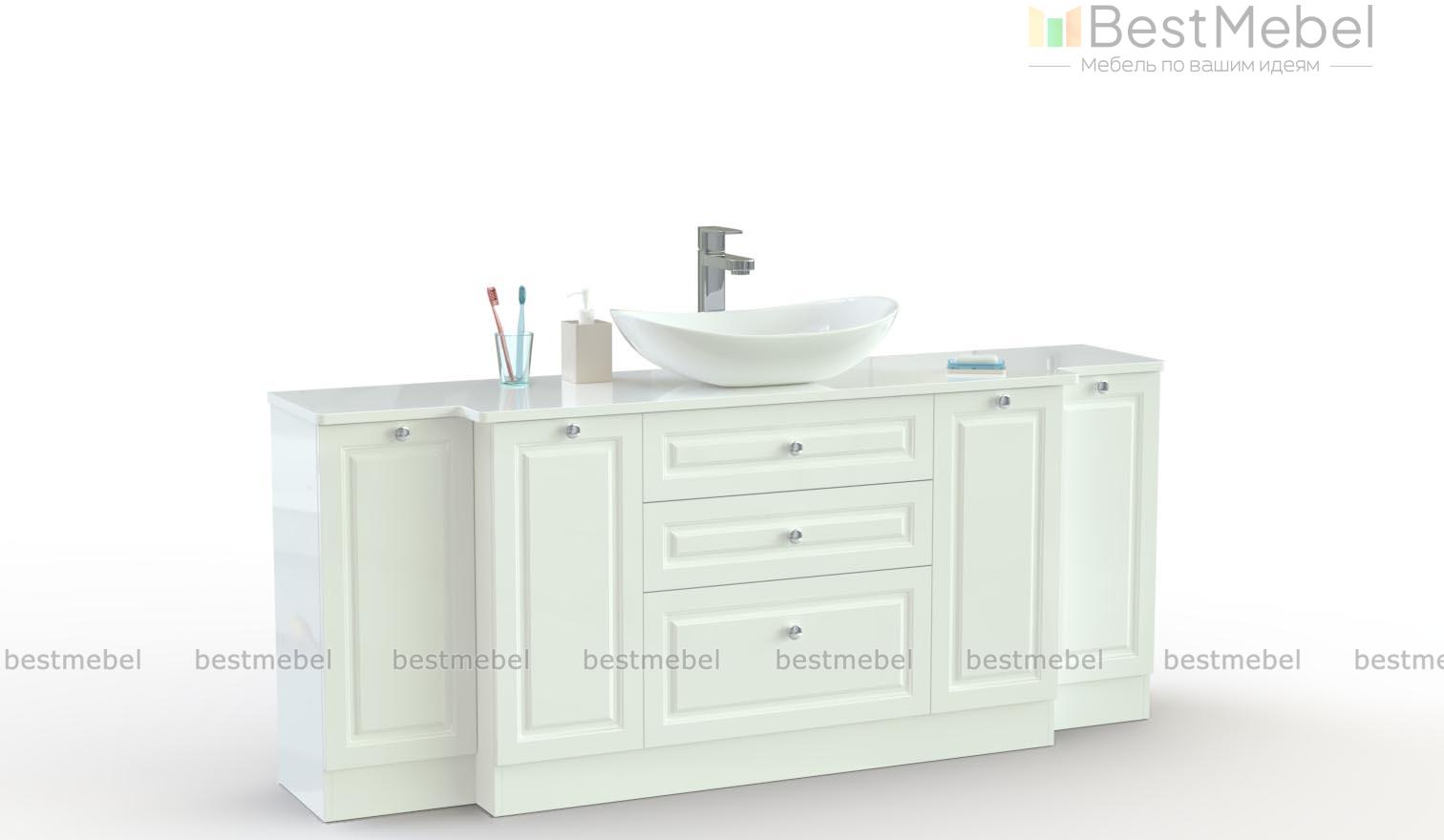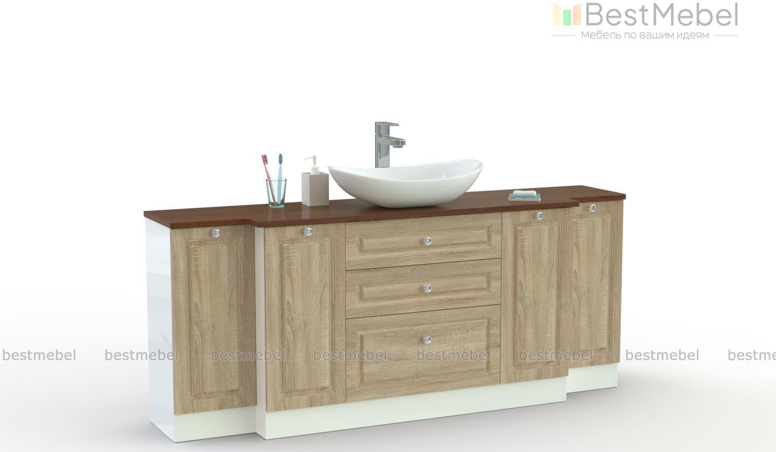Тумба для ванной Поло 5 BMS станет прекрасным выбором для просторных помещений. Широкая модель с разноуровневым фасадом выполнена в элегантном классическом стиле и декорирована рамочной фрезеровкой. Оборудованная тремя глубокими выдвижными ящиками и четырьмя распашными отделениями с полками, тумба легко решит проблему хранения большого количества вещей, а столешница может играть роль туалетного столика. Купить тумбу для ванной Поло 5 BMS по отличной цене приглашаем к нам в интернет-магазин.