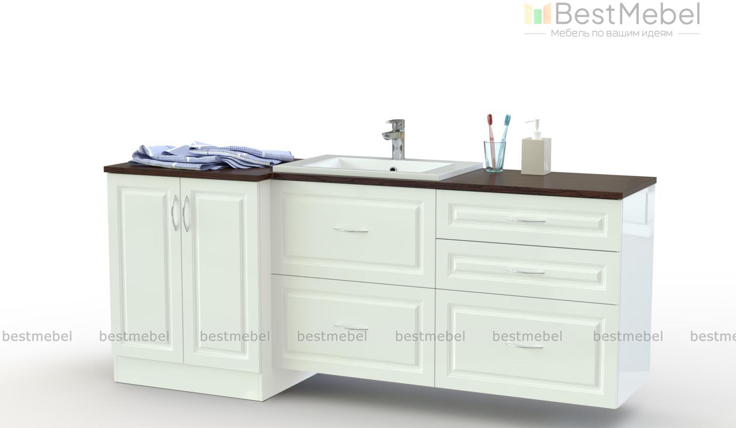 Тумба под раковину Франко 2 BMS станет частью роскошного интерьера в неоклассическом стиле. Широкая модель, объединившая напольную распашную секцию и навесную с выдвижными ящиками, компактно разместит большое количество вещей – уходовые средства, аксессуары, текстиль и бытовую химию. Просторная столешница под врезную раковину, выполненная в светлых тонах, эффектно сочетается с фрезерованным фасадом. Купить тумбу под раковину Франко 2 BMS приглашаем в наш интернет-магазин.