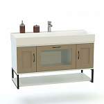 Тумба в ванную Дельта 15 BMS – это широкая напольная модель, которая гармонично дополнит лофтовые интерьеры. В оформлении тумбы сочетаются разные фактуры – поверхности холодных голубых тонов, нейтрально-серые и черный металл. Модель, предназначенная для установки раковины, оборудована выдвижным застекленным ящиком, двумя распашными отделениями и открытой секцией для хранения гигиенических средств и текстиля. Купить тумбу в ванную Дельта 15 BMS вы сможете на сайте нашего интернет-магазина.