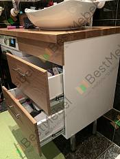 Из-за нестандартных размеров ванной комнаты никак не могли подобрать тумбу в магазинах. И тут нас выручил онлайн магазин БэстМебель. Выбрали тумбу под наши размеры, цвет под столешницу. После оформления заказа позвонил менеджер магазина, уточнил детали заказа, посоветовал как лучше сделать монтаж. Затем на электронную почту прислали эскиз тумбы для утверждения. Доставка была удобная, срок доставки не переносили, заранее позвонили. Тумбу муж собрал сам. Качество отличное! Нам все очень понравилось. Начислили балы на счет. Теперь выбираем кровать.                                      |