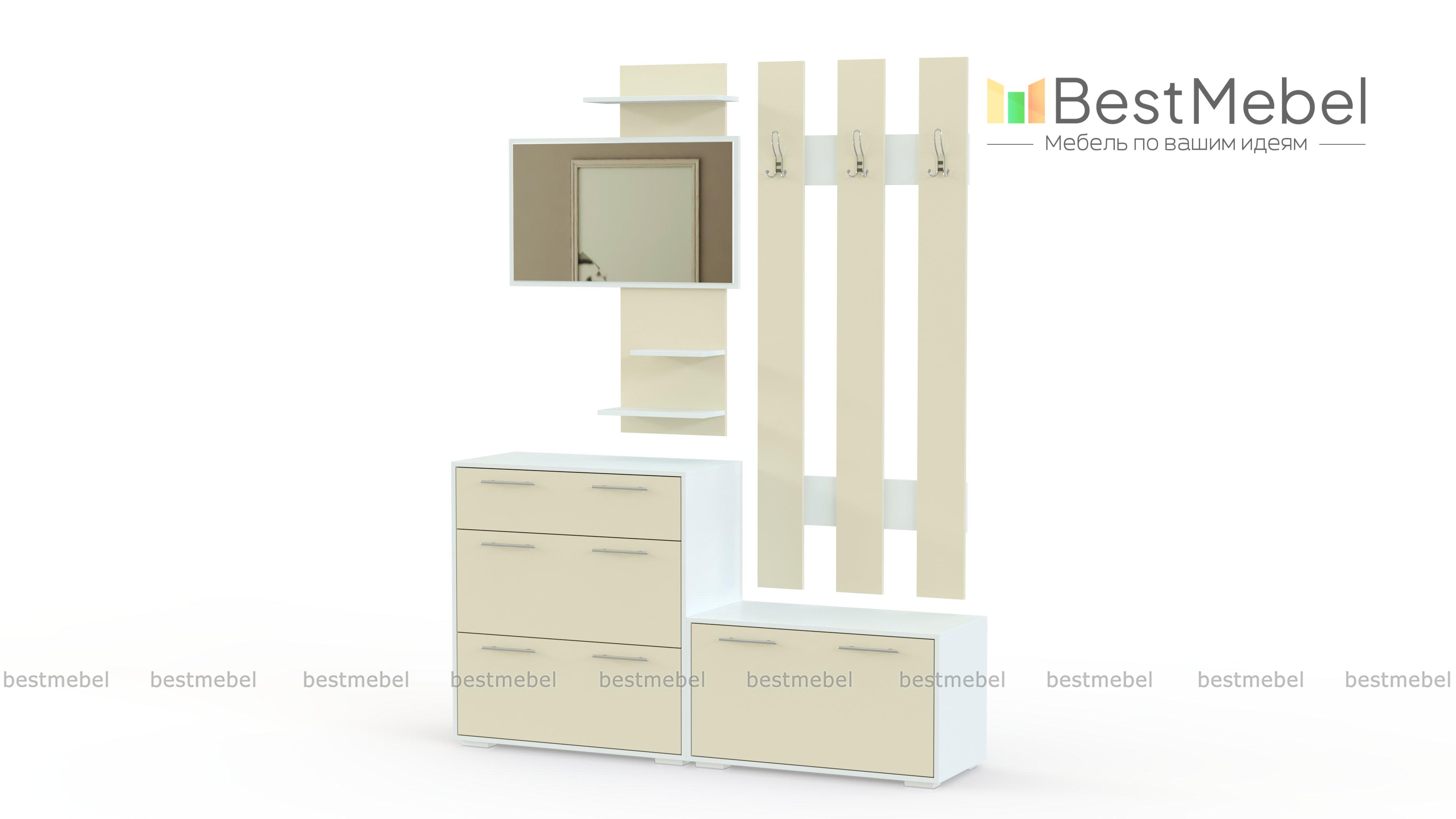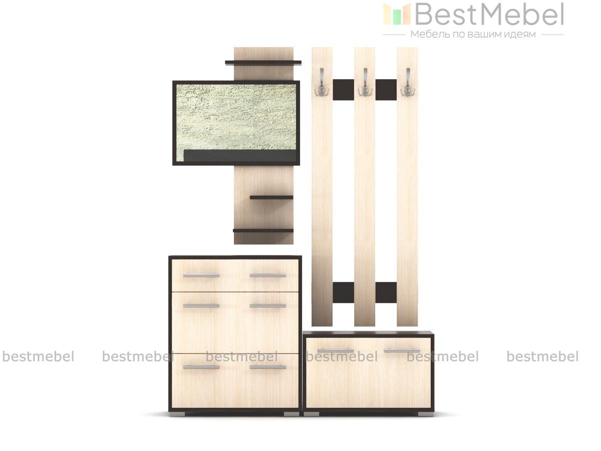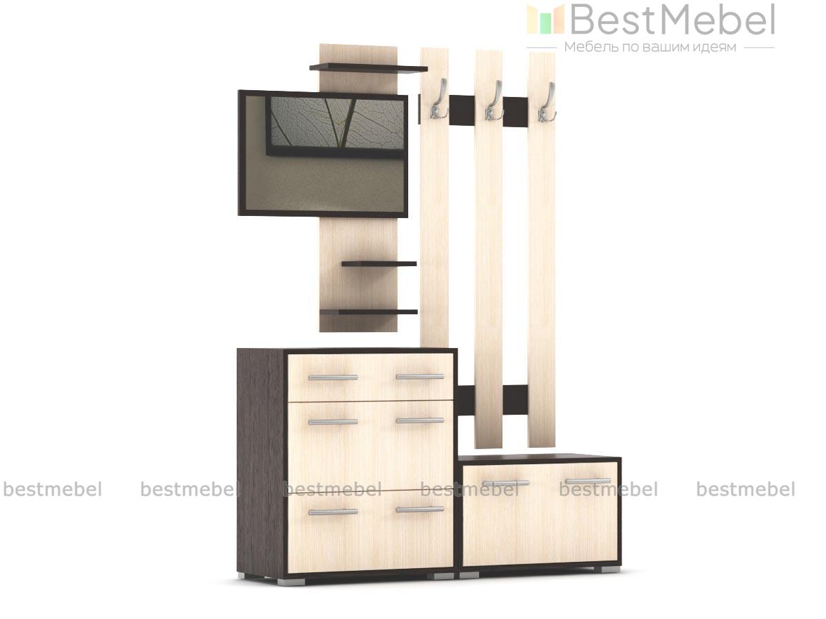 Прихожая Браво 03 BMS – компактный и экономичный вариант для малогабаритного помещения. В комплект входит все самое необходимое для размещения одежды, обуви и аксессуаров – навесная панель с крючками, две тумбы-обувницы – большая и малая, и элегантное панно с зеркалом и открытыми полочками для мелочей. Популярное цветовое решение в контрастных древесных тонах позволит без труда вписать модель в меблировку. Купить прихожую Браво 03 BMS по доступной цене приглашаем в наш интернет-магазин.