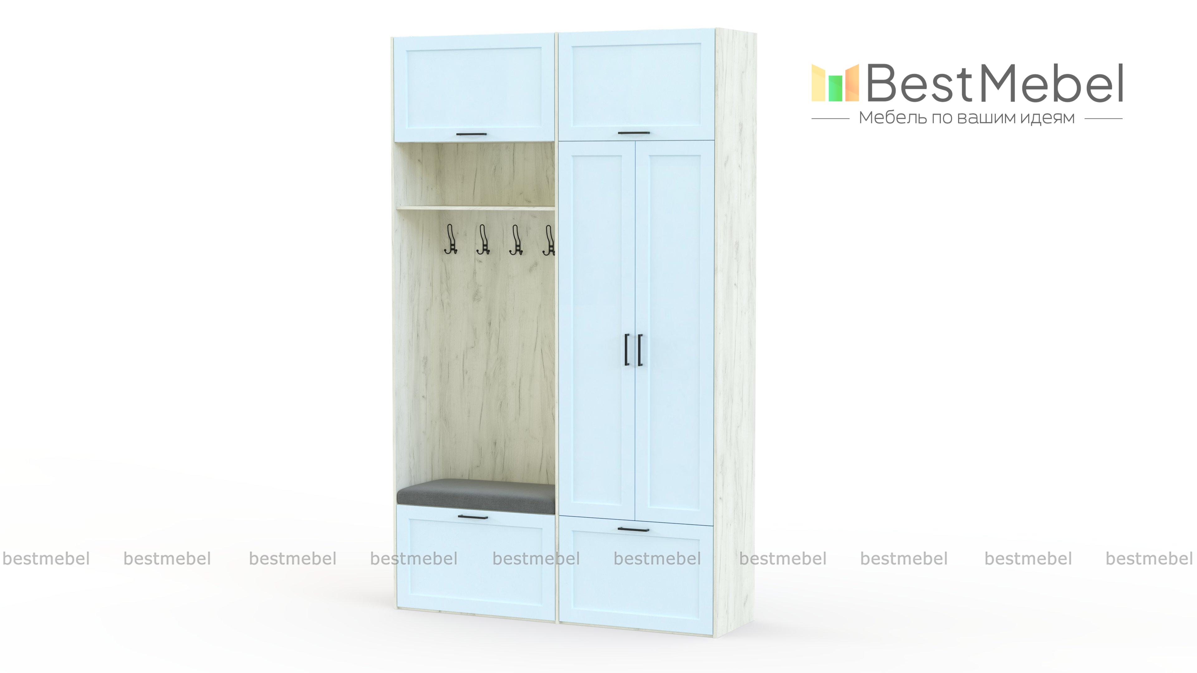 Прихожая Клэр 11 BMS одинаково гармонично вписывается в современный и классический интерьер. Элегантная высокая модель с антресолями оборудована двухдверным отделением со штангой и закрытыми нижними секциями для хранения обуви или аксессуаров. Открытая вешалка в светлых тонах выделяется на фоне ярких цветных фасадов с традиционной рамочной отделкой. Купить прихожую Клэр 11 BMS приглашаем в наш интернет-магазин с выбором фурнитуры и цвета по каталогу.