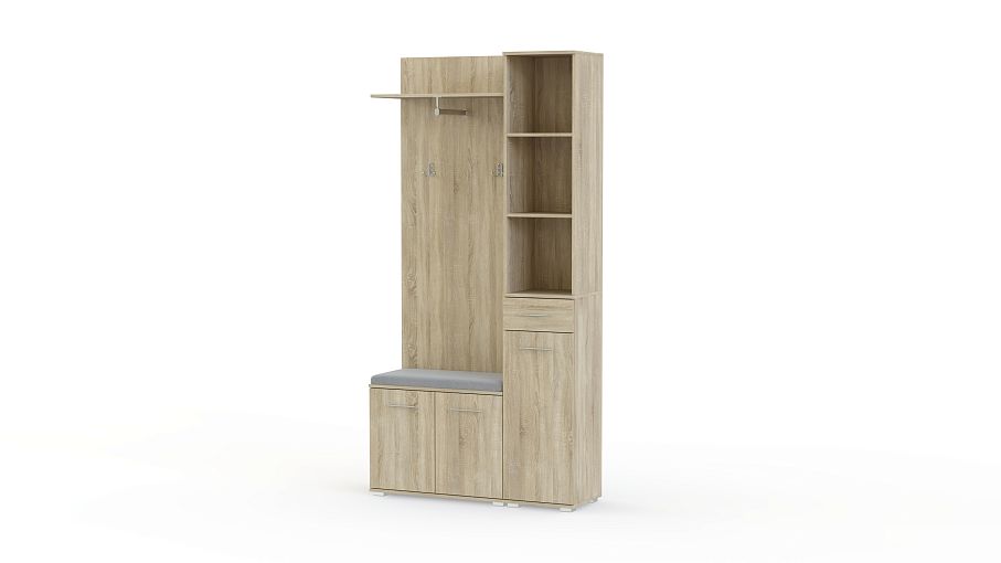 Прихожая Майя 2 BMS – компактная модель для уютного и стильного современного интерьера. Конструкция легко впишется в малогабаритные помещения и позволит разместить не только одежду и обувь, но и разнообразные мелочи благодаря открытым полкам. В комплект входят панель с крючками, полка для головных уборов, низкая тумба с мягким сиденьем, обтянутым тканью, и комбинированный узкий пенал. Купить прихожую Майя 2 BMS вы сможете недорого в нашем интернет-магазине.