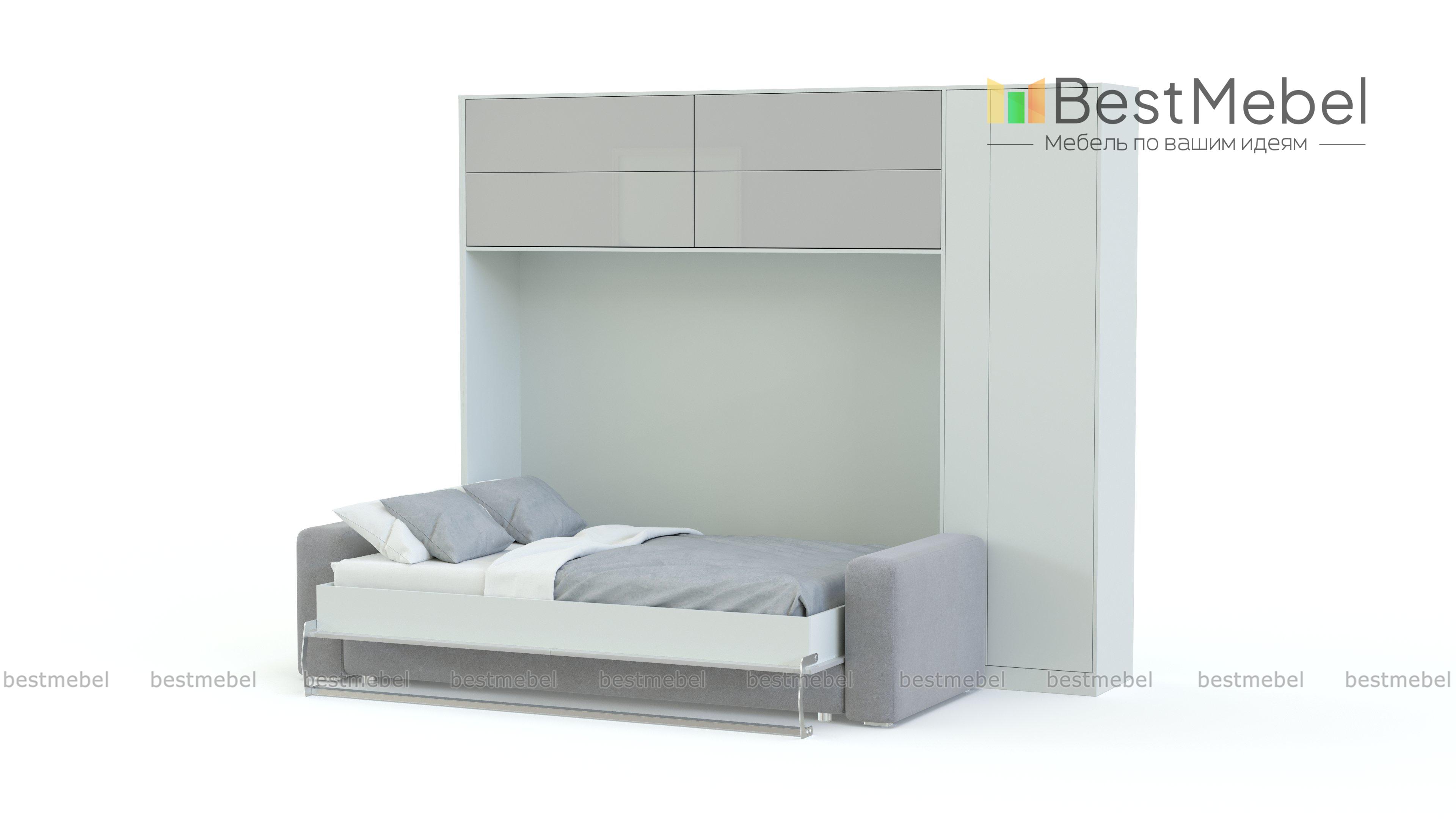 Кровать-трансформер с диваном Григо BMS гармонично вписывается в узкие пространства за счет горизонтального механизма раскладывания. Композиция включает в себя комфортное кресло минималистичного дизайна и небольшой глубины шкаф, за фасадом которого скрыта полноценная двуспальная кровать. Сочетание нежного ванильного глянца и светлых древесных тонов эффектно дополнит современные интерьеры. Купить кровать-трансформер с диваном Григо BMS и сэкономить полезную площадь вам поможет наш интернет-магазин.