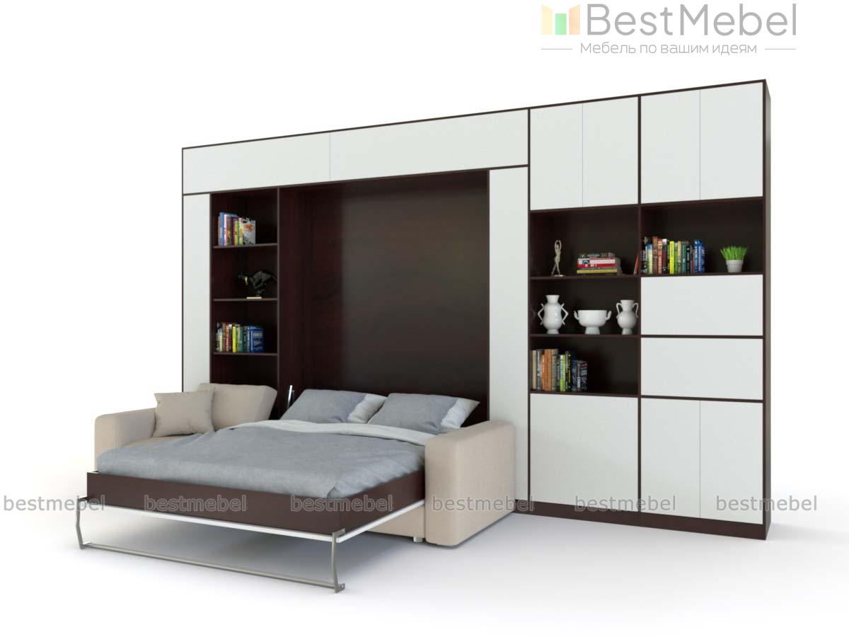 Шкаф-кровать Астра BMS позволит вам максимально эффективно использовать доступное пространство и создать комфортный минималистичный интерьер. Практичная стенка с белоснежными фасадами в контрастной древесной окантовке оборудована удобной системой хранения, комфортным просторным диваном с мягкими приспинными подушками и модулем-трансформером, который легко превращается в полноценное спальное место. Купить шкаф-кровать Астра BMS приглашаем в наш интернет-магазин с учетом всех необходимых параметров.