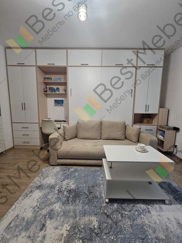 Отличный вариант для студии, где хочется впихнуть всё - и нормальную кровать, и рабочий стол, и много мест для хранения... Надоело спать на диване! Поэтому я закала этот проект по своим размерам, в светлых тонах и очень довольна результатом! 👍Разбирается / собирается легко, постельное и подушки остаются внутри! Очень вместительные антрисоли и шкафы. Единственный огромный минус - это гигантская подушка с дивана, которую некуда деть, под диван она не влазит, приходится ей стену подпирать 🙄 тут нужна доработка 🤔 На подаренные от покупки баллы потом взяла здесь журнальный столик!