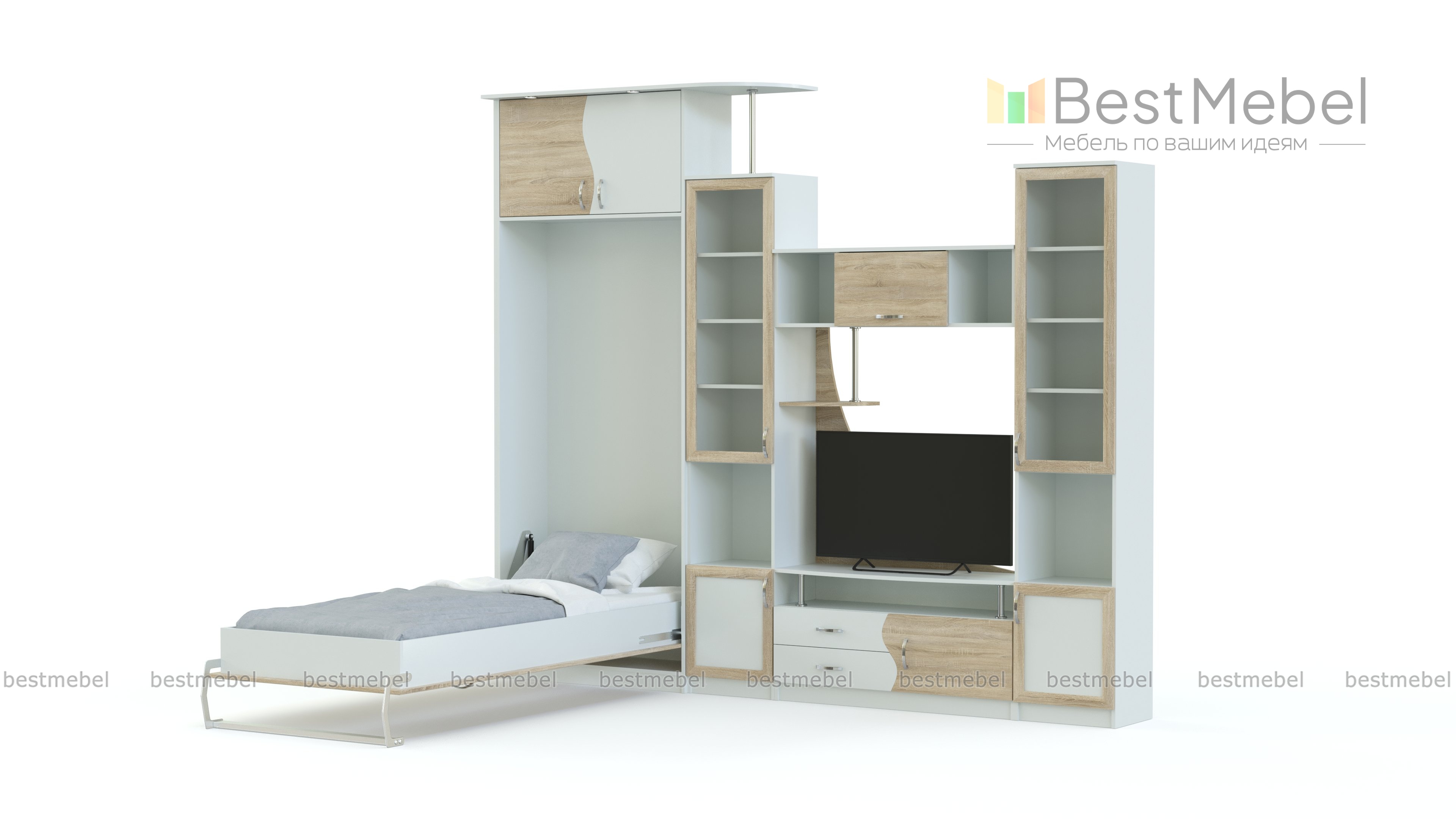 Шкаф-кровать трансформер Долли 45 BMS – это многофункциональная современная горка. Для удобного хранения бытовых мелочей, размещения предметов декора, книг и аппаратуры модель оборудована комбинированным шкафом с витриной, тумбой под ТВ, открытыми полками и антресолью, а легко получить полноценное спальное место поможет модуль с откидной кроватью. Фасады с волнообразно вырезанными дверцами выполнены в теплой бело-бежевой гамме. Купить шкаф-кровать трансформер Долли 45 BMS приглашаем в наш интернет-магазин по доступной цене.