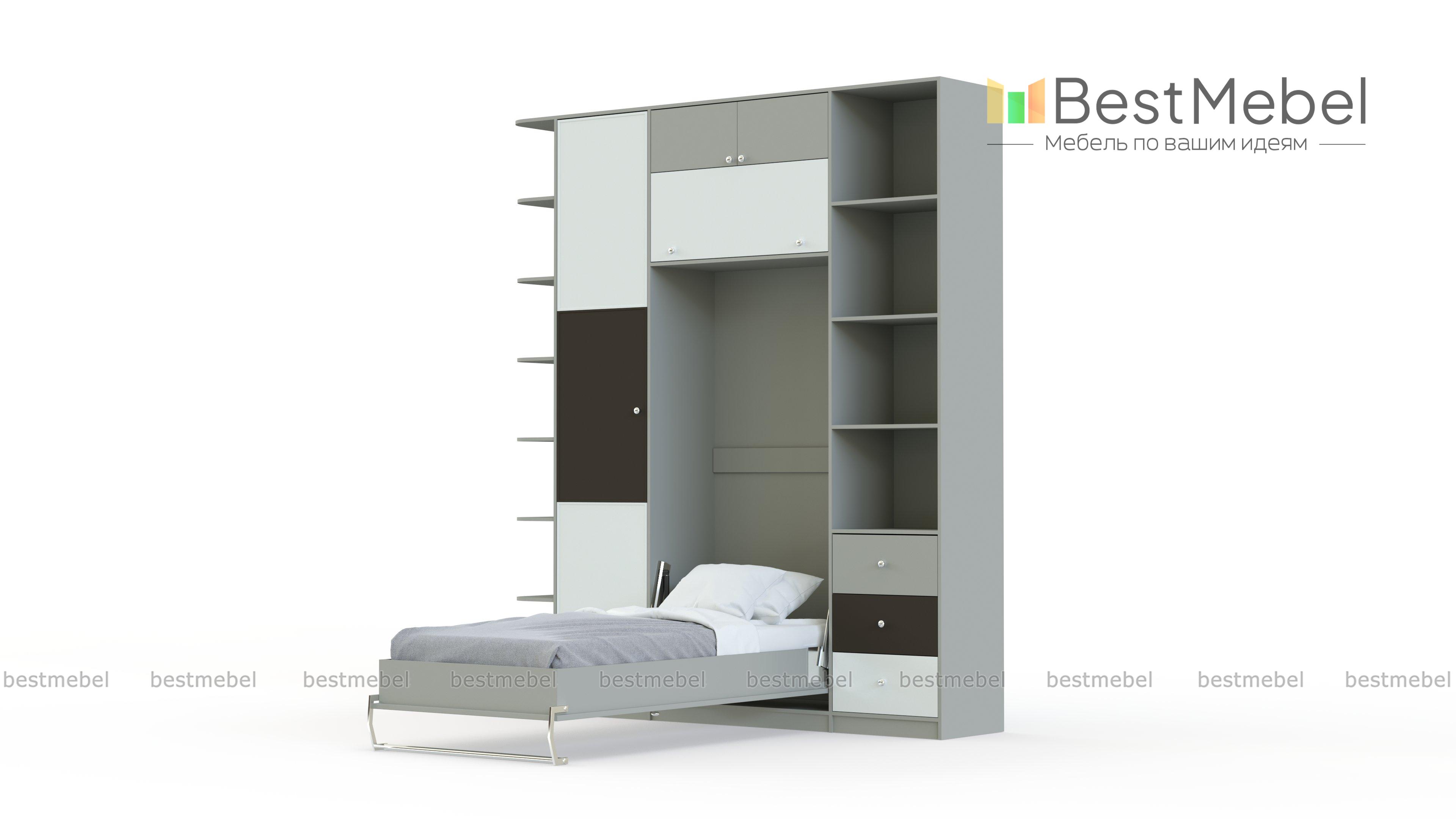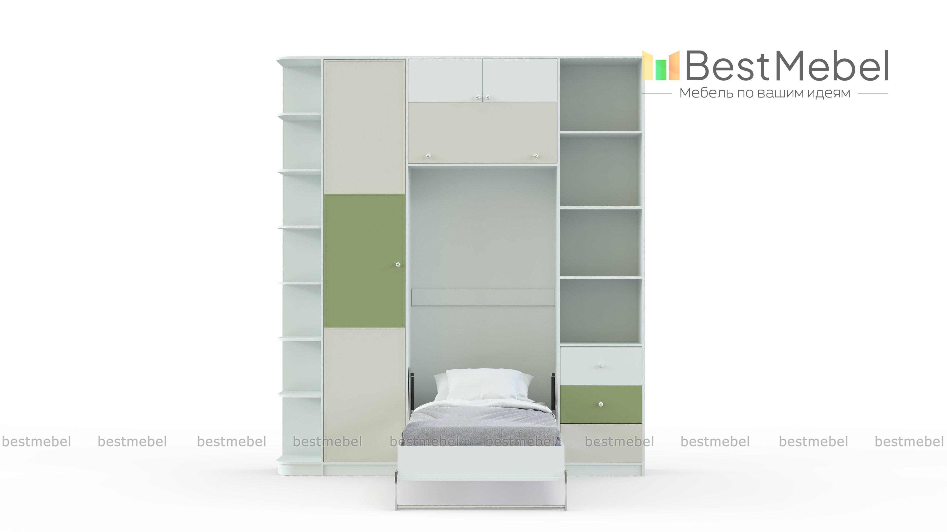 Шкаф-кровать трансформер Фазан 58 BMS относится к «умной» мебели, которая поможет максимально выгодно использовать доступное пространство и оптимальна для малогабаритных квартир. Оборудовать уютную и функциональную детскую поможет композиция 3 в 1, объединившая спальное место, рабочую зону и удобную систему хранения. Шкаф оборудован пеналом для одежды, торцевым и комбинированным стеллажами, антресолями и модулем с откидной кроватью и столиком. Светлые тона корпуса дополняют яркие вставки зеленого цвета на фасадах. Купить шкаф-кровать трансформер Фазан 58 BMS приглашаем в наш интернет-магазин.