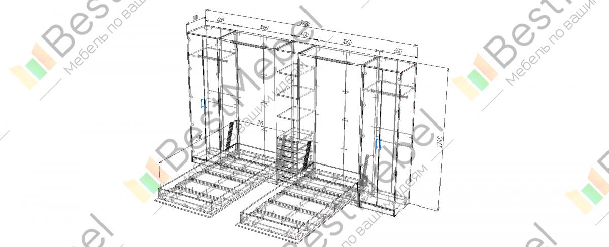 Шкаф-кровать трансформер Клеопатра BMS – оригинальное решение для комнаты двоих детей, которое по достоинству оценят маленькие владельцы и их родители. Практичный трансформер объединил две откидных кровати, замаскированные под шкафы, платяной шкаф и книжный стеллаж с выдвижными ящиками в основании. В сложенном виде композиция не отличается от привычной стенки и экономит полезную площадь детской для игр. Купить шкаф-кровать трансформер Клеопатра BMS и создать яркий и функциональный интерьер вам поможет наш интернет-магазин.