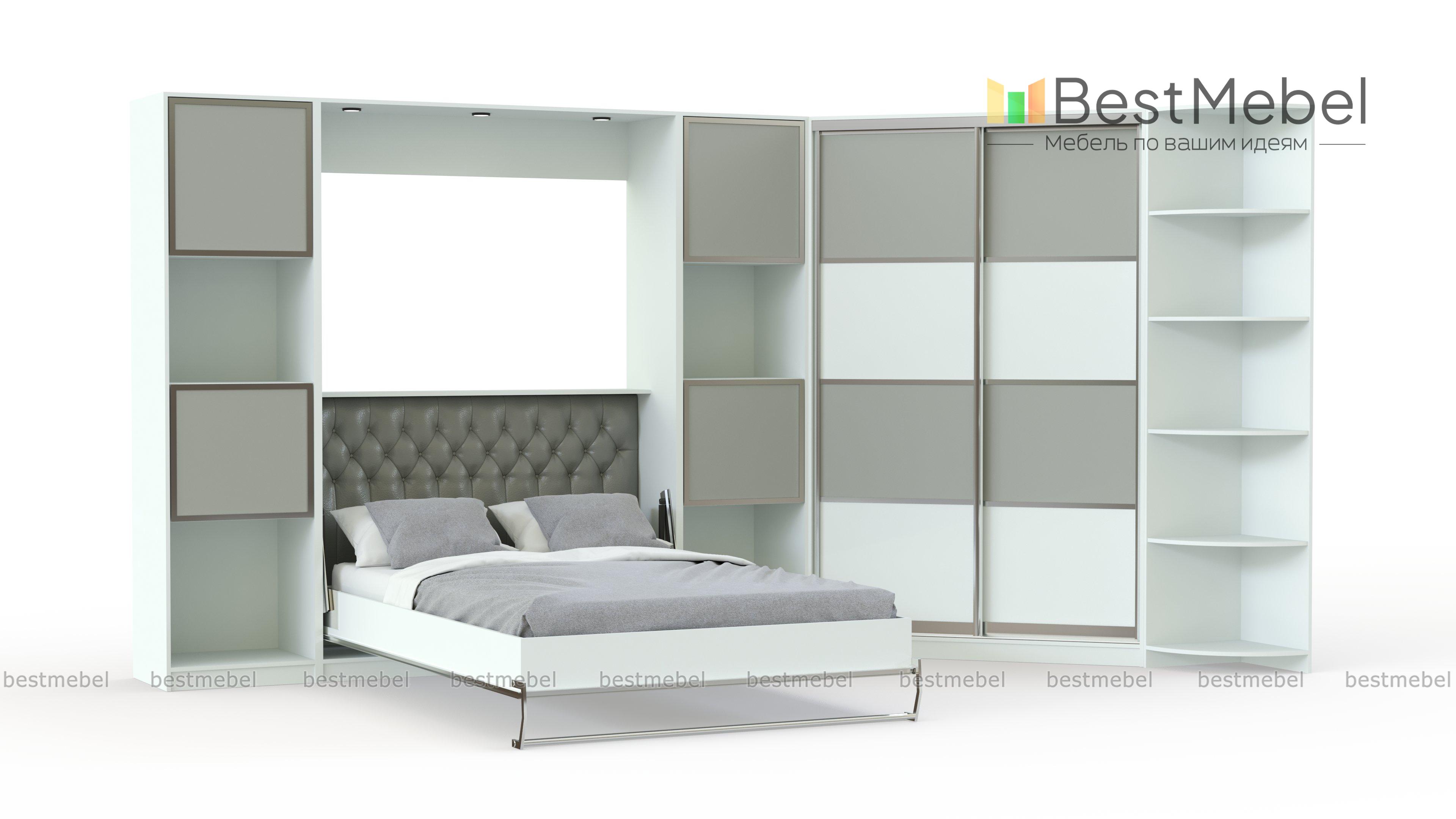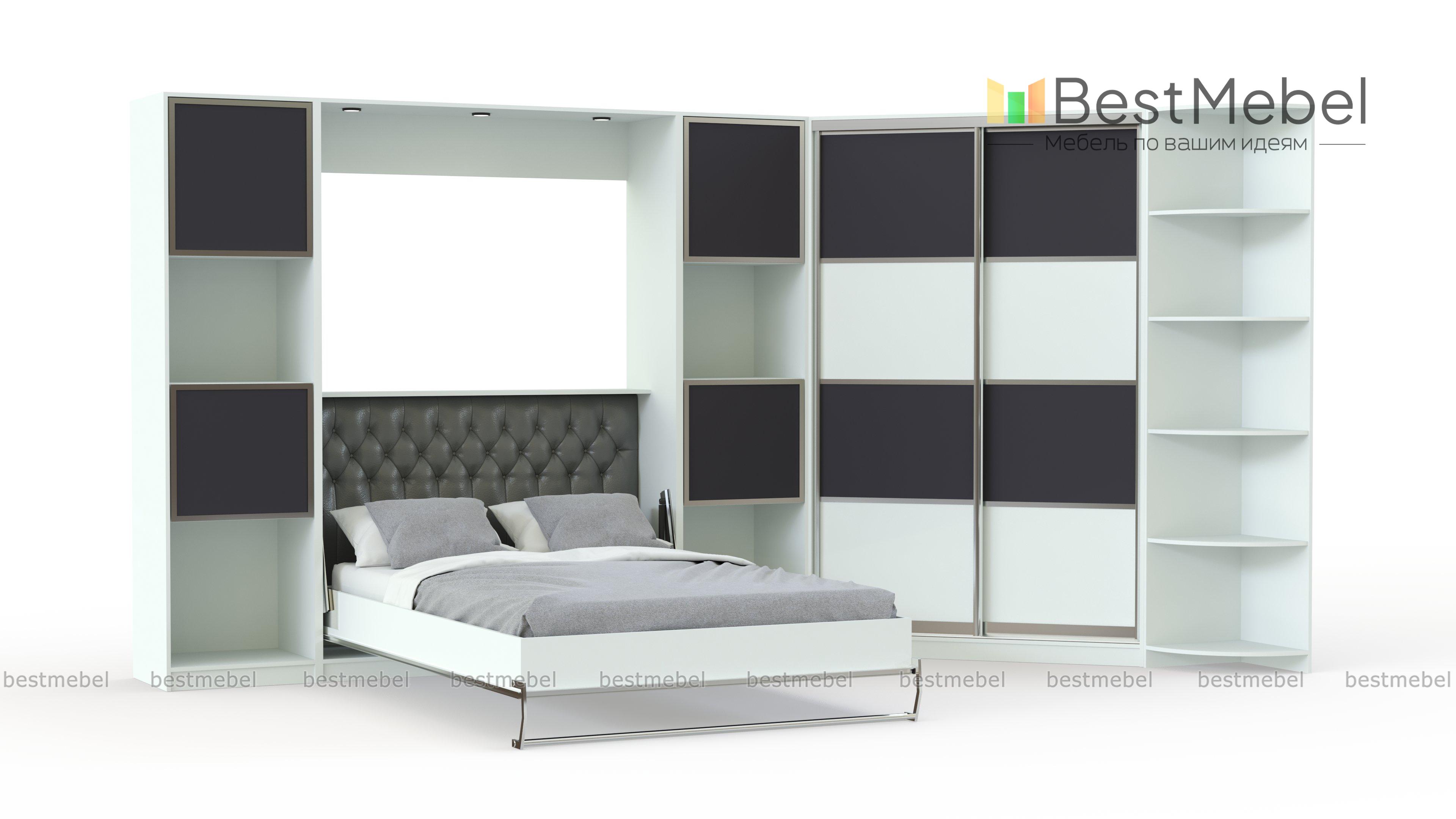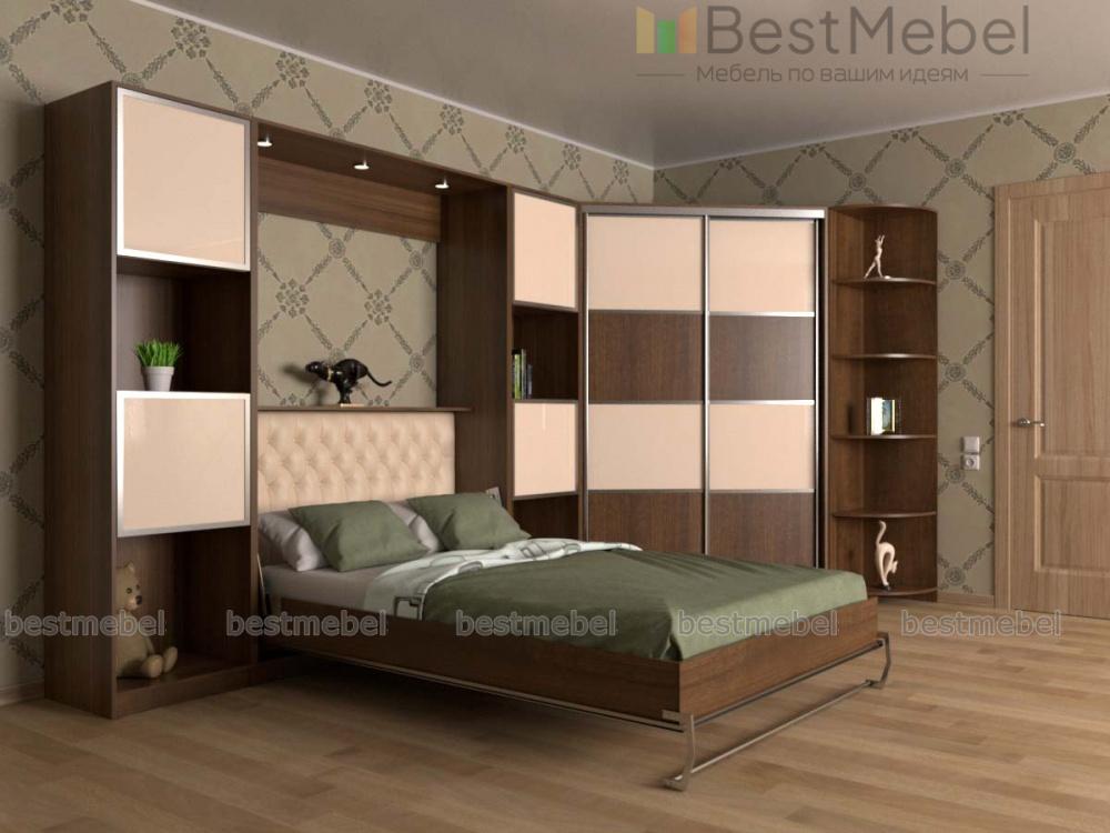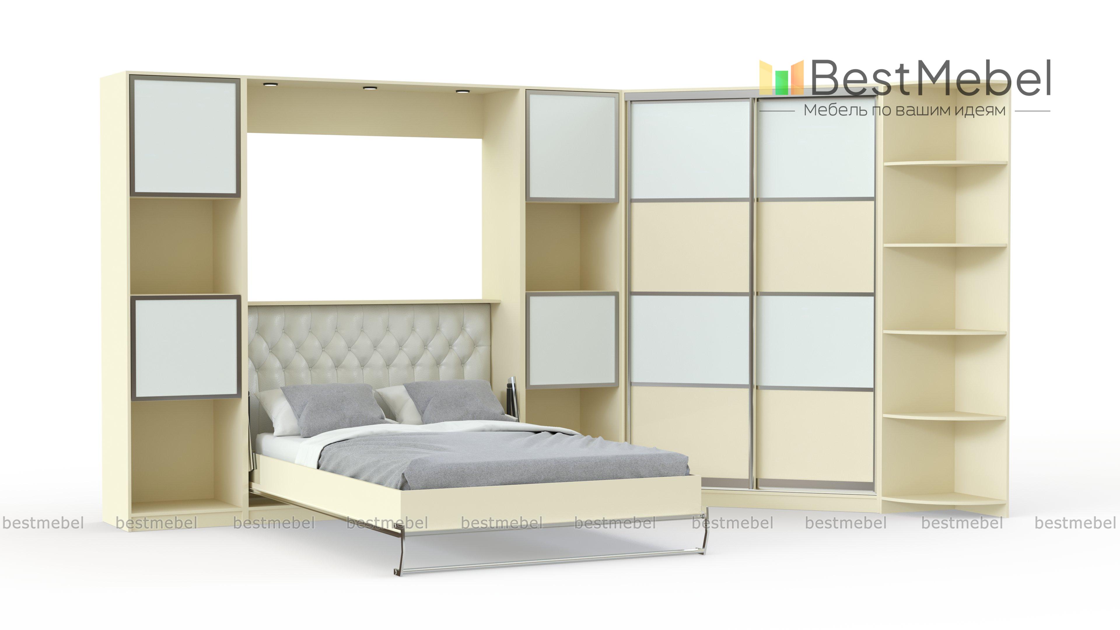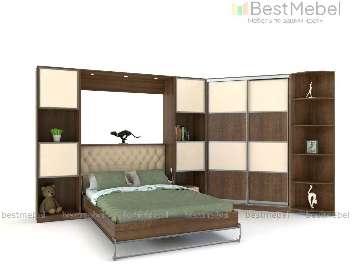 Шкаф-кровать трансформер Клора BMS поможет рационально организовать пространство квартиры-студии. Многофункциональная композиция Г-образной формы по максимуму использует особенности планировки и значительно экономит полезную площадь. В комплект входят комбинированные шкафы, угловая секция для одежды, торцевой стеллаж и замаскированная под дверцу откидная кровать. Теплая коричнево-бежевая гамма сделает современный интерьер уютным. Купить шкаф-кровать трансформер Клора BMS приглашаем в наш интернет-магазин.