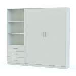 Шкаф-кровать трансформер Куба BMS отличается универсальным современным дизайном и подойдет владельцам малогабаритных квартир и студий. Многофункциональная модель 2 в 1 конструктивно объединила секцию с выдвижными ящиками и полками для книг, предметов декора и бытовых мелочей и откидную двуспальную кровать, скрытую за имитацией двухдверного шкафа. Надежный механизм трансформации обеспечит долговечность и простоту в эксплуатации. Купить шкаф-кровать трансформер Куба BMS и освободить комнату от лишней мебели вам поможет наш интернет-магазин.