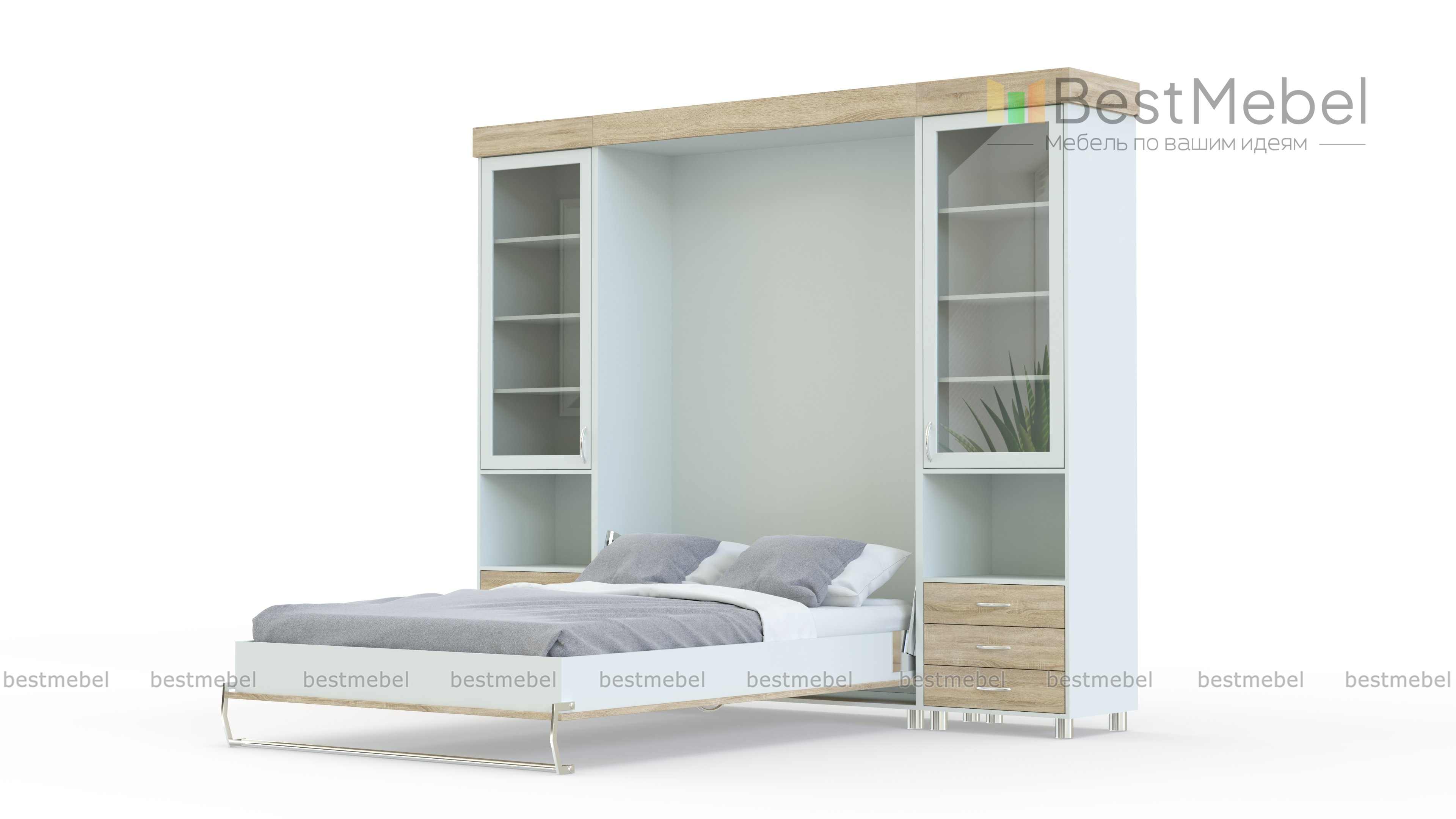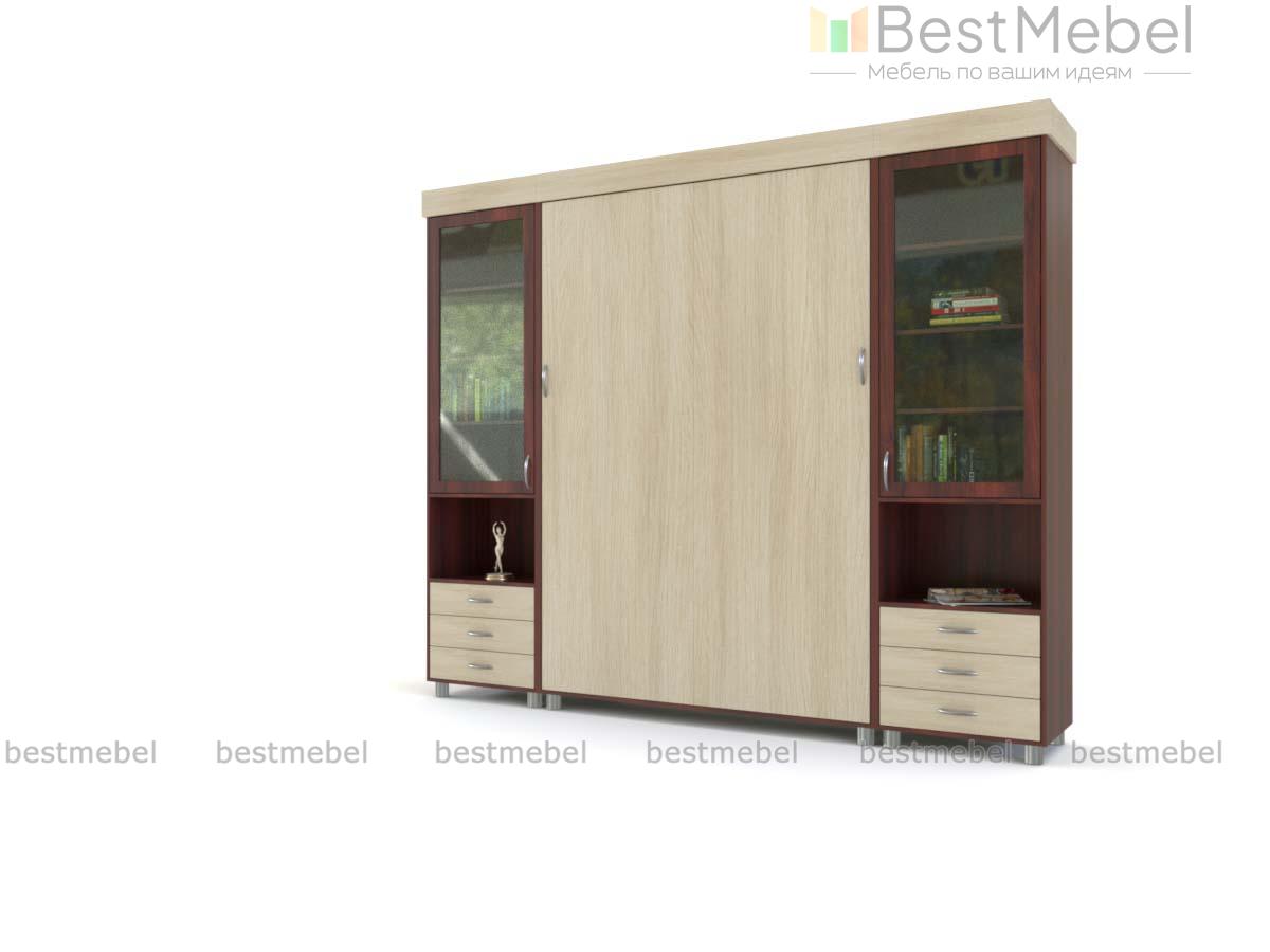 Шкаф-кровать трансформер Шелли 26 BMS отличается крупными габаритами, но не смотрится громоздко благодаря застекленным фасадам. Угловой комплект поможет эффективно использовать пространство, объединив удобную систему хранения и спальное место. Для размещения одежды, бытовых мелочей, книг и предметов декора предусмотрены трехдверный шкаф-купе, два комбинированных шкафа с ящиками и витринами и модуль с откидной встроенной кроватью. Купить шкаф-кровать трансформер Шелли 26 BMS с учетом нужных параметров приглашаем в наш интернет-магазин.