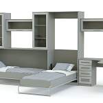 Шкаф-кровать трансформер Виктор BMS поможет максимально эффективно использовать доступное пространство. Угловая композиция, объединившая удобную систему хранения, рабочую зону и два спальных места, станет находкой для малогабаритных детских комнат. В комплект, выполненный в классических древесных тонах, входят открытые и застекленные полки на хромированных опорах, компьютерный столик и две откидных кровати – с вертикальным и горизонтальным механизмом подъема. Купить шкаф-кровать трансформер Виктор BMS приглашаем в наш интернет-магазин по доступной цене.