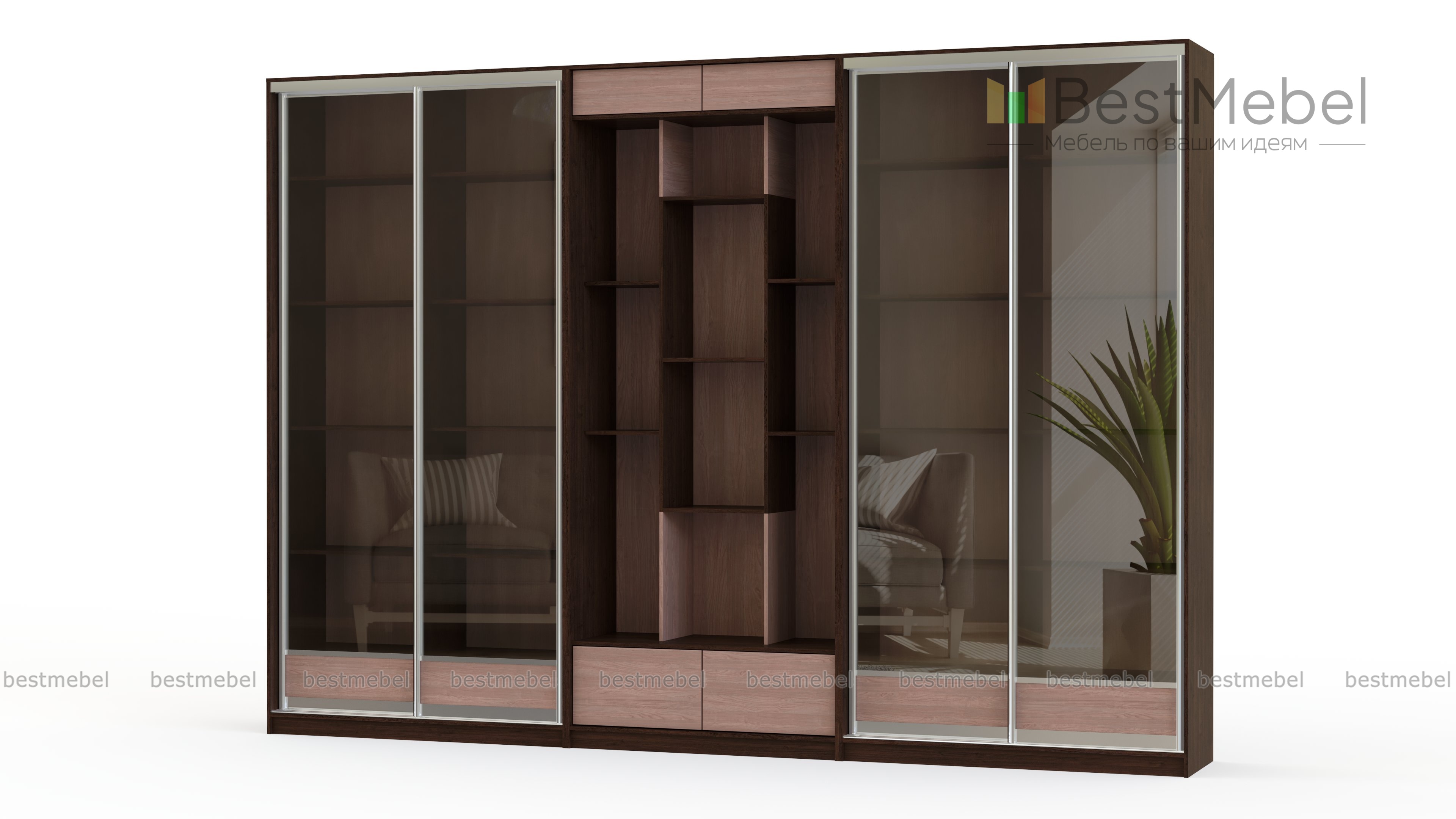 Двойной шкаф-купе Женева 26 BMS – удобная система хранения для современной гостиной и элемент дизайна. Полностью закрывающая одну из стен, конструкция поможет скрыть недостатки планировки и эффективно использовать доступное пространство. Шкаф оборудован двумя отделениями с раздвижными дверцами и открытой секцией с ящиками и полками для книг и предметов декора. Визуальную легкость модели придают стеклянные фасады с профилем оттенка серебро. Купить двойной шкаф-купе Женева 26 BMS и решить проблему хранения вам поможет наш интернет-магазин.