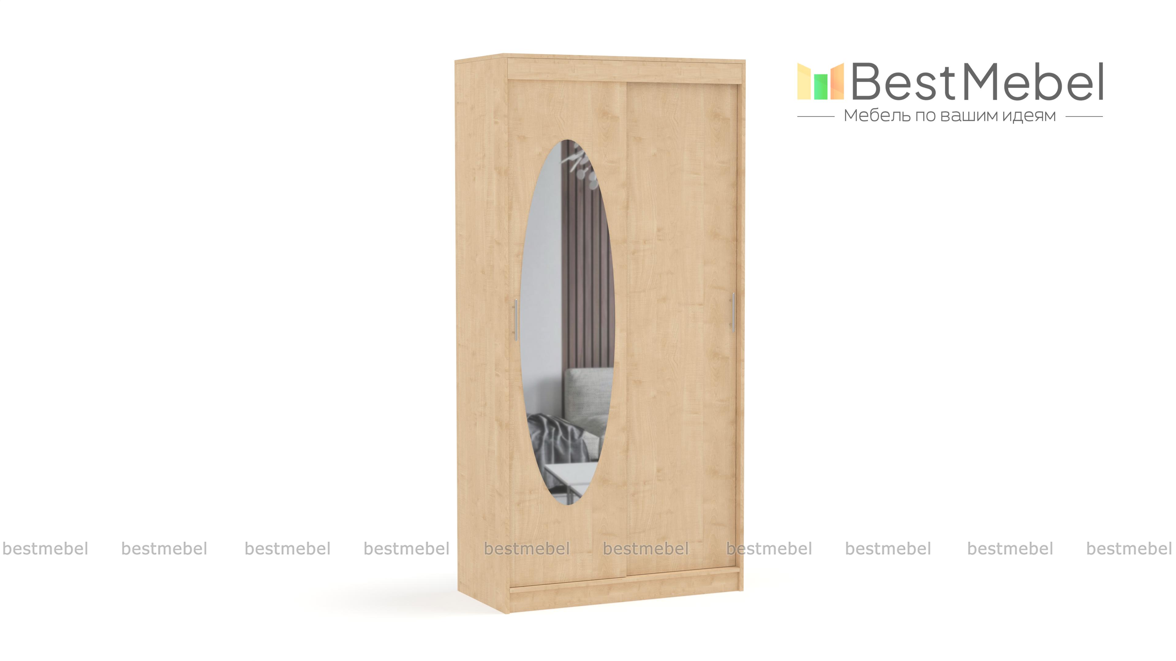 Шкаф-купе Ретро BMS поможет вам создать винтажный или классический интерьер. Двухдверная модель с платяным отделением не занимает много места и оптимальна для помещений небольшого метража. Выполненный из качественной ламинированной плиты в древесных тонах, шкаф дополнен овальным зеркалом, которое не только выполняет практическую функцию, но и играет роль декора. Купить шкаф-купе Ретро BMS приглашаем к нам в интернет-магазин с возможностью выбора цвета и размеров.
