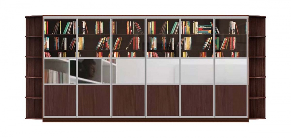 Шкаф-купе Библиотека У 9 BMS эффектно сочетает в оформлении фасада прозрачное стекло, зеркала и вставки древесных тонов. Просторные полки разместят обширную домашнюю библиотеку и документы, а для необходимых под рукой мелочей и предметов декора предусмотрены торцевые радиусные стеллажи. Дверцы раздвижной конструкции не требуют свободного пространства для открывания и экономят полезную площадь. Купить шкаф-купе Библиотека У 9 BMS для гостиной или кабинета приглашаем в наш интернет-магазин.