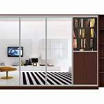 Шкаф-купе Денни 7.12 BMS визуально расширит границы комнаты и разместит большое количество вещей. Комбинированная модель, оборудованная застекленными и глухими секциями с фасадами в древесных тонах и зеркальными, позволяет хранить как книги, так и разнообразные бытовые вещи, экономя на лишней мебели. Для предметов декора и необходимых под рукой мелочей предусмотрен торцевой стеллаж с радиусными полками. Купить Шкаф-купе Денни 7.12 BMS для меблировки современной гостиной вы сможет в нашем интернет-магазине.