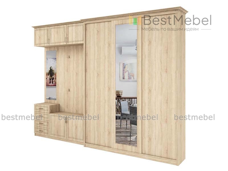 Шкаф-купе для прихожей DC-13017 BMS предназначен для просторных помещений и поможет организовать удобное хранение повседневной одежды, обуви, сезонных аксессуаров. Крупногабаритная модель экономит полезную площадь за счет раздвижной конструкции дверей, а ростовое зеркало на фасаде, незаменимое для примерок, визуально расширяет границы прихожей. Поверхности практичной расцветки под древесный массив с фрезеровкой просты в уходе и отличаются износостойкостью и долговечностью. Купить шкаф-купе для прихожей DC-13017 BMS приглашаем в наш интернет-магазин.