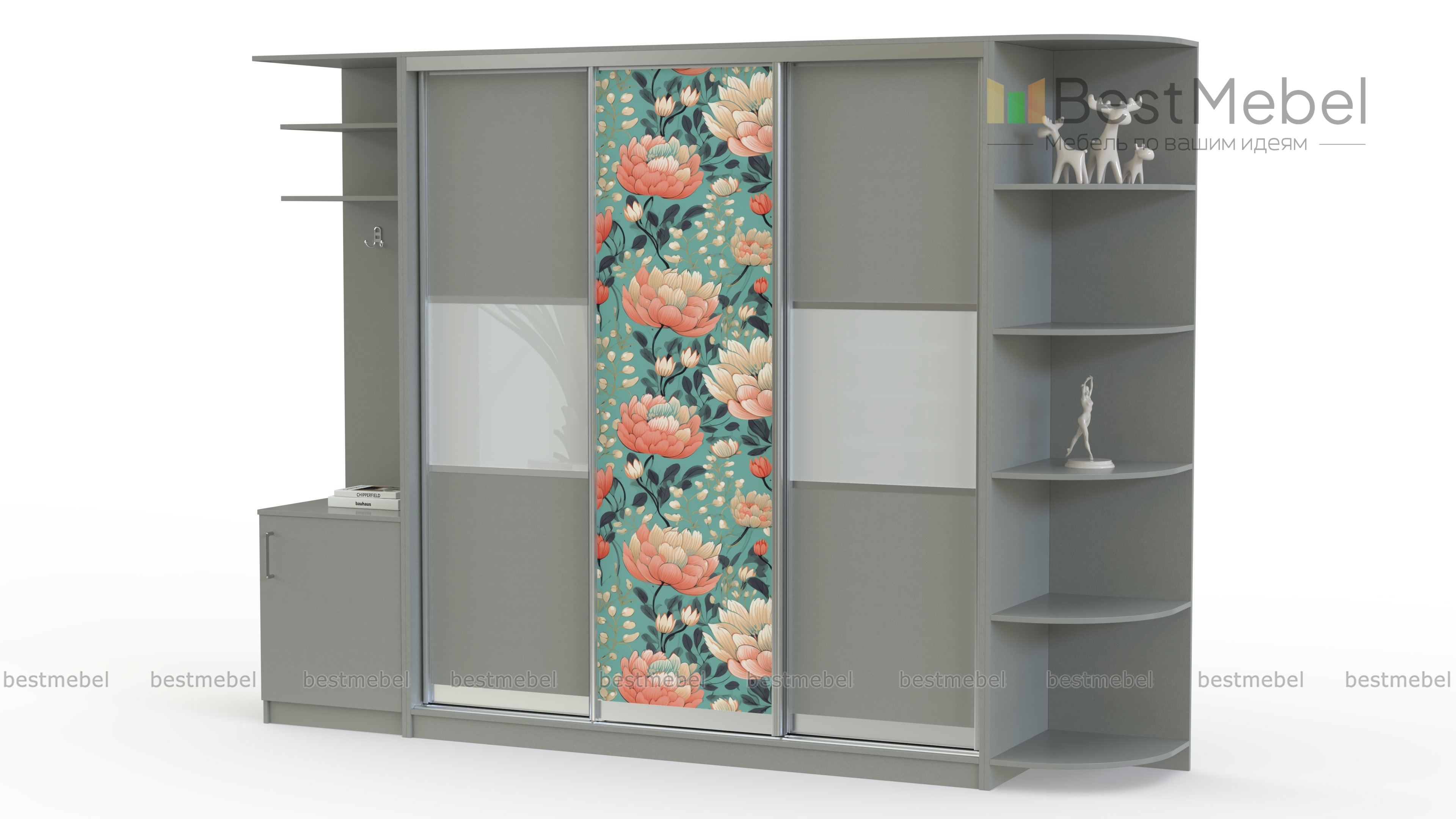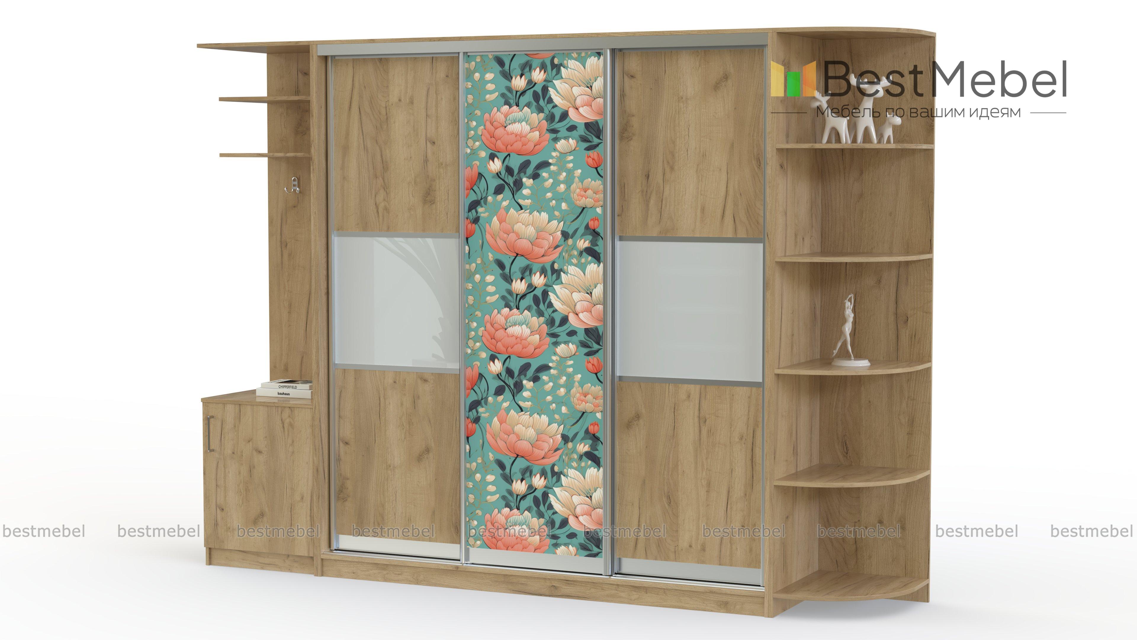 Шкаф-купе Флора 13 BMS декорирован по фасаду цветочным рисунком-фотопечатью, который станет ярким интерьерным акцентом. Трехдверная модель с вместительным платяным отделением дополнена торцевым скругленным стеллажом и секцией с открытой вешалкой, распашной тумбой и полками под головные уборы. Шкаф поможет легко поддерживать порядок в прихожей и сэкономит пространство за счет раздвижной конструкции. Купить Шкаф-купе Флора 13 BMS приглашаем в наш интернет-магазин.