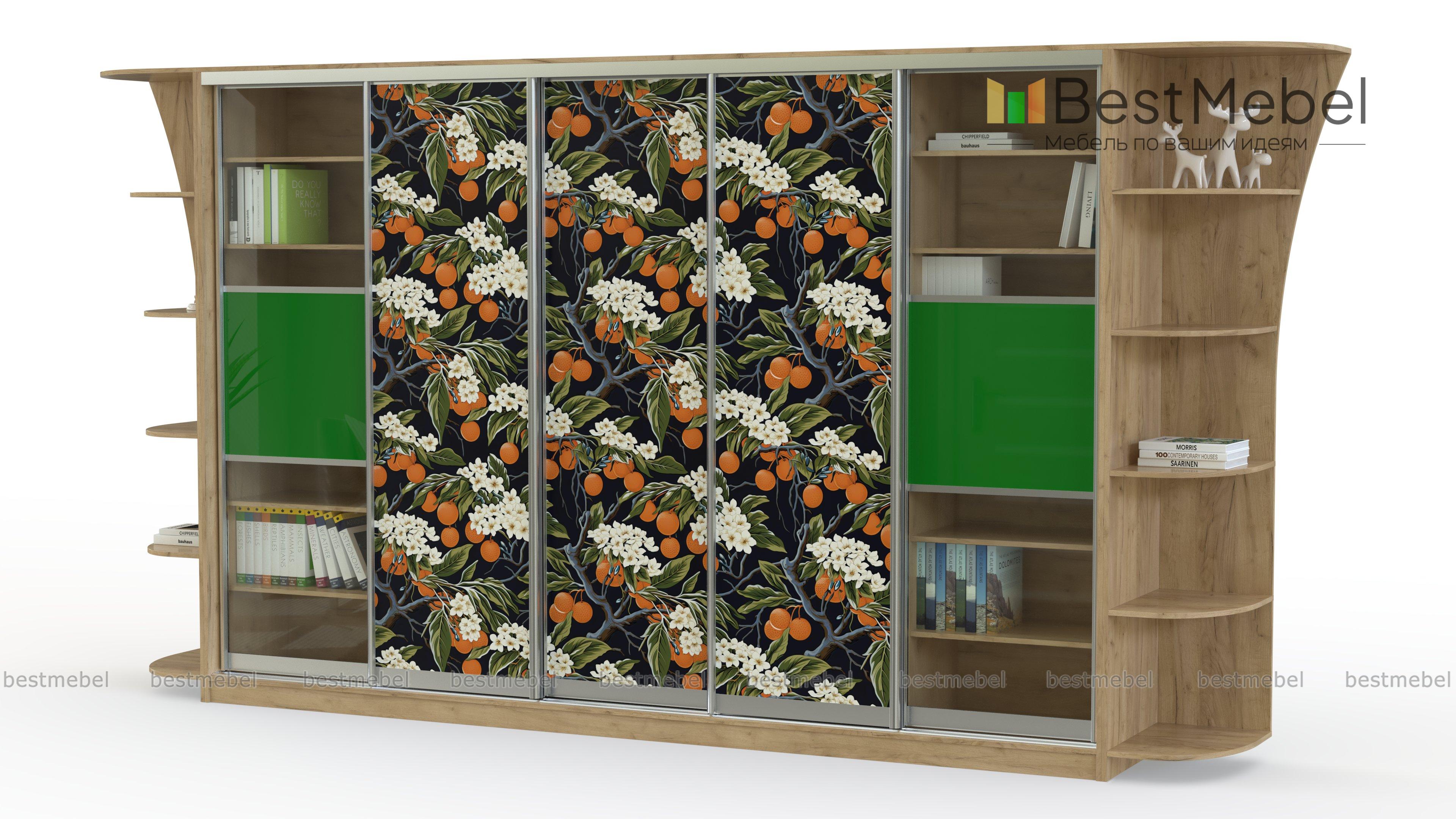 Шкаф-купе Каролина 16 BMS поможет выигрышно представить книги из домашней библиотеки и предметы декора, а для одежды и бытовых мелочей предусмотрены глухие отделения. Пятидверная модель сочетает в оформлении фасада стекла и стильную фотопечать, а завершенный вид композиции придают фигурные стеллажи в древесных тонах. Сэкономить полезную площадь комнаты позволят дверцы раздвижной конструкции. Купить шкаф-купе Каролина 16 BMS для меблировки гостиной приглашаем в наш интернет-магазин.