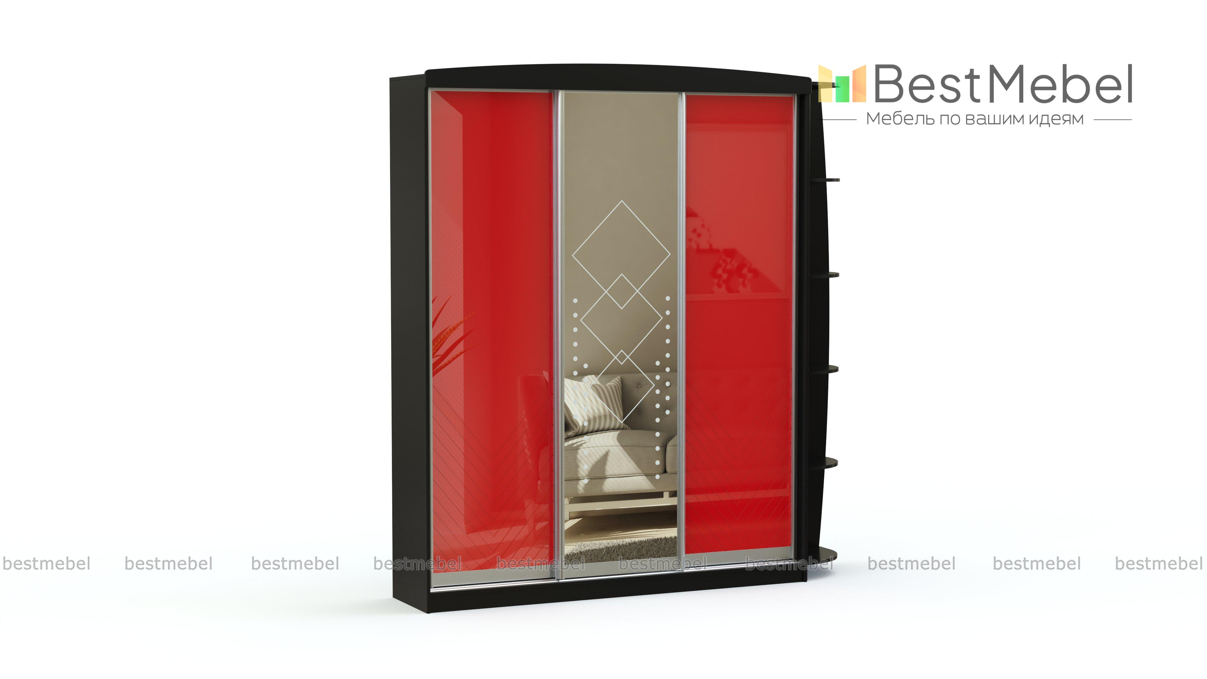 Шкаф-купе Куб BMS с тремя створками и дополнительным открытым стеллажом с полками отлично впишется в просторную прихожую или небольшую квартиру-студию. Комбинированное оформление фасада шкафа позволяет гармонично вписать его в интерьер помещения, не утяжеляя его. Центральная створка по умолчанию декорируется цельным зеркалом с пескоструйным рисунком. Внутреннее наполнение шкафа может быть подобрано в индивидуальном порядке и включать выдвижные ящики, штанги для вешалок и полки.