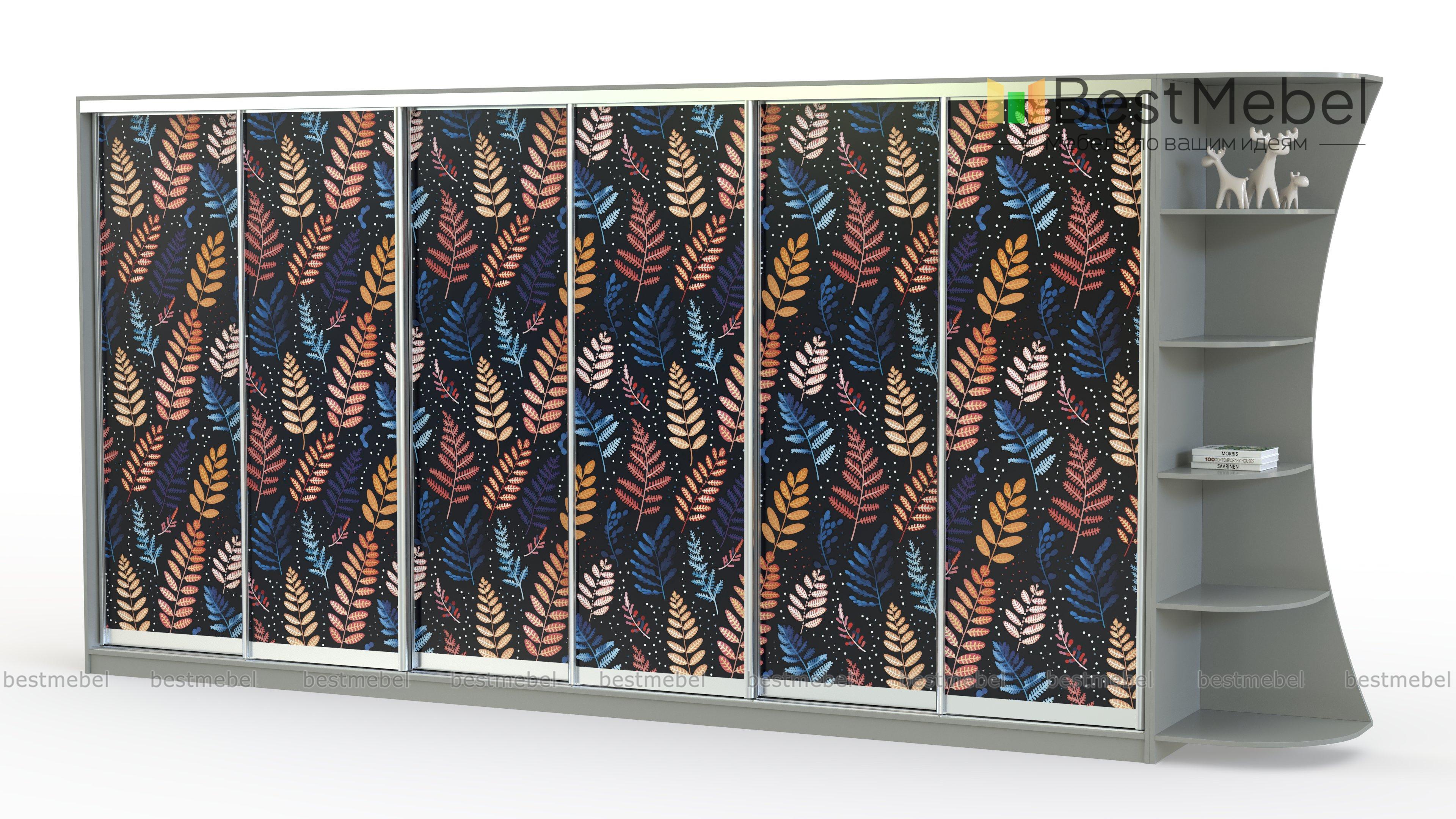 Шкаф-купе Луна 128 BMS с насыщенной цветовой палитрой не требует дополнительного декора. Фасад шестидверного шкафа украшен растительным узором, выполненным в технике фотопечати. Раздвижные створки обеспечивают легкий доступ к содержимому полок и платяных отделений, а изящно вырезанный торцевой стеллаж позволяет разместить на виду необходимые под рукой мелочи. Купить шкаф-купе Луна 128 BMS с учетом оптимальных размеров и цвета приглашаем на сайт нашего интернет-магазина.