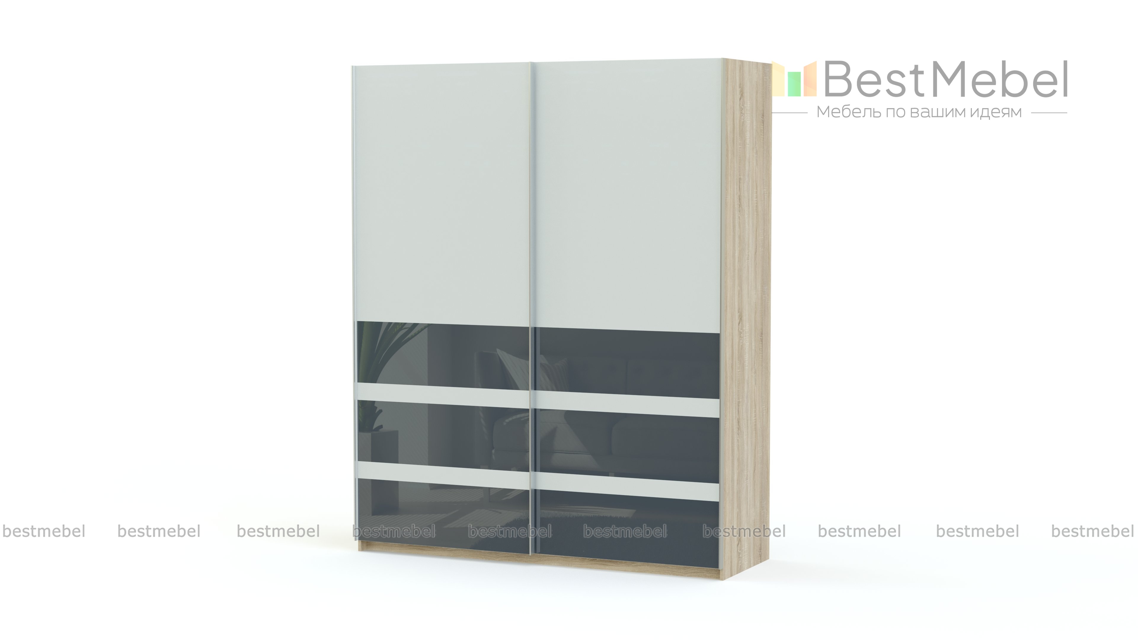 Крупногабаритный вместительный шкаф-купе Люкс 22 BMS позволит разместить весь ваш гардероб и не загромождать лишней мебелью другие помещения дома. Модель оборудована просторным отделением со штангой для вешалок и верхней полкой для хранения одежды в сложенном виде. Фасады выполнены в нейтральном уютном светлом оттенке и декорированы горизонтальными накладками из цветного стекла. Практичный и надежный, шкаф-купе прослужит вам долгие годы.