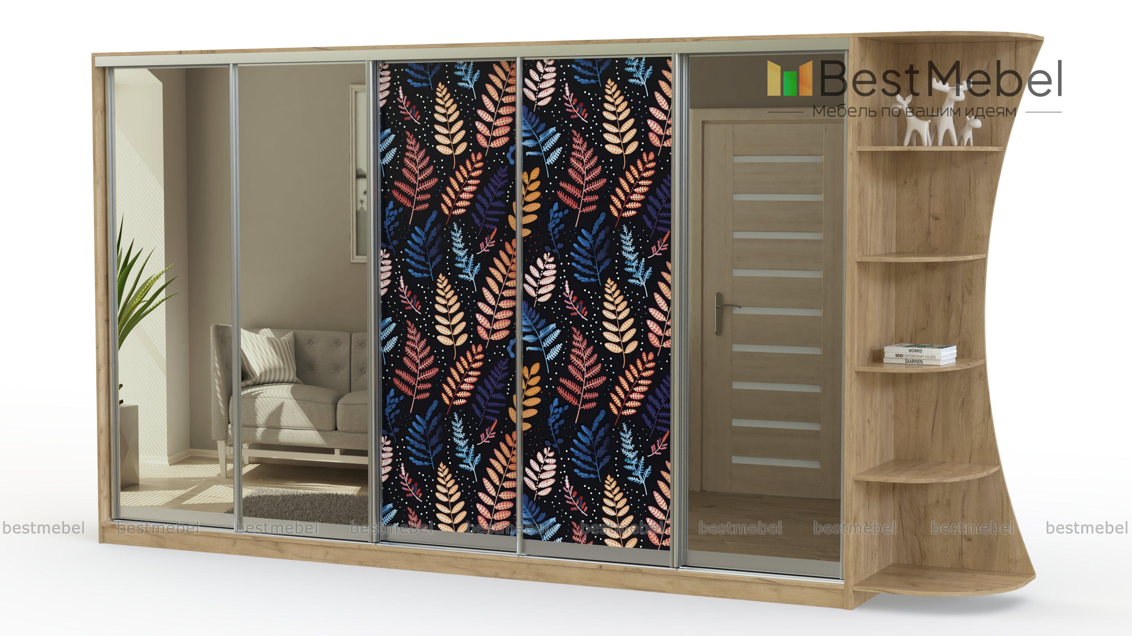 Шкаф-купе Маки 110 BMS имеет пятидверную конструкцию и практичное дополнение в виде эффектно вырезанного стеллажа. Шкаф с легкостью разместит семейный гардероб, а ростовые зеркальные полотна на фасаде сделают удобными примерку одежды и уход за собой. Дизайн шкафа, в котором сочетаются растительные мотивы и древесные тона, дает отсылку к природе. Купить шкаф-купе Маки 110 BMS с возможностью изготовления по индивидуальным размерам приглашаем в наш интернет-магазин.