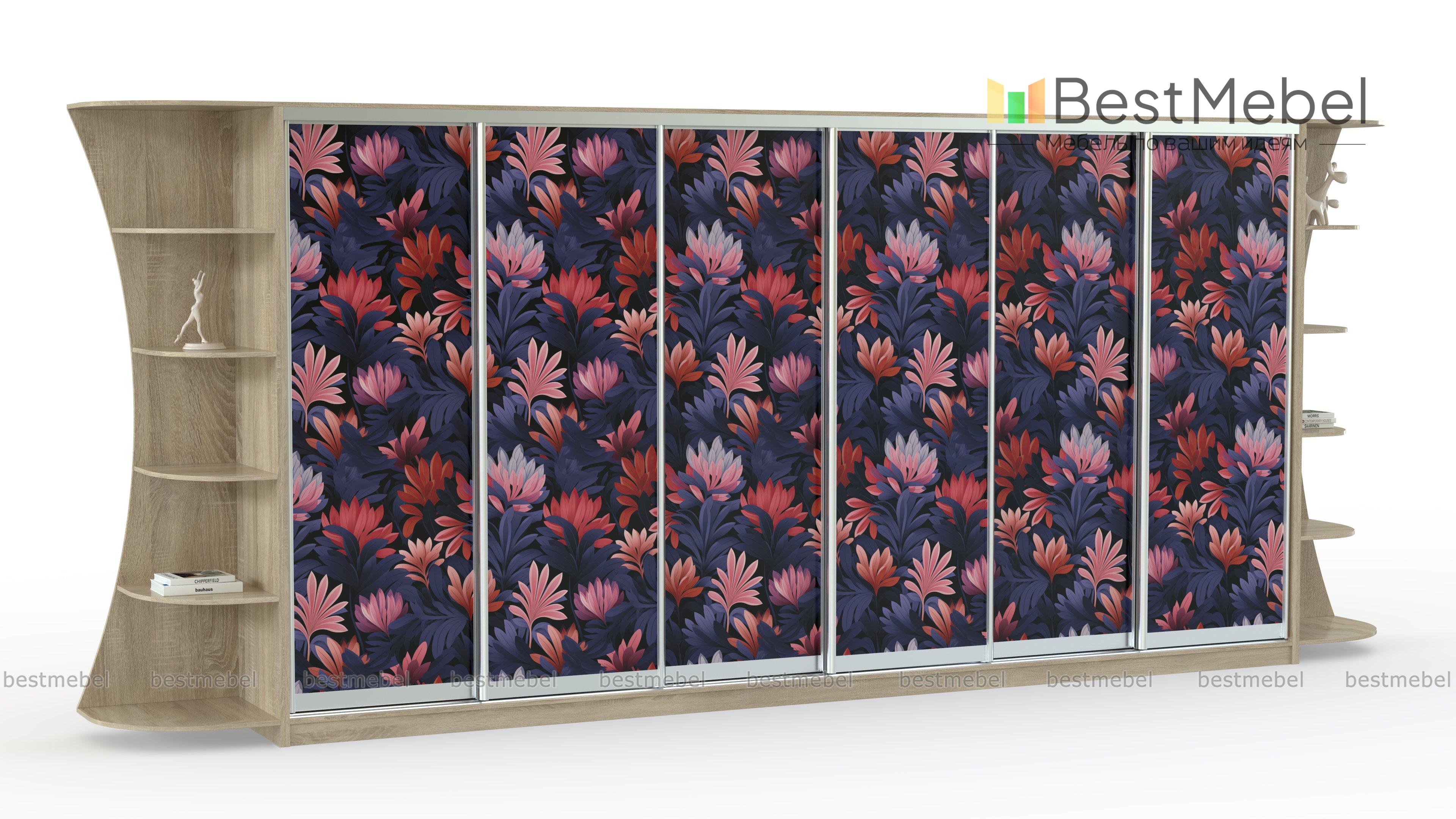Шкаф-купе Пион 17 BMS станет прекрасным выбором для просторной современной гостиной, сочетая яркий дизайн и высокую функциональность. Шестидверная модель украшена по фасаду эффектной цветочной фотопечатью, а по бокам от основного отделения располагаются фигурно вырезанные радиусные стеллажи. Комбинированная конструкция позволит вам разместить как предметы гардероба и домашний текстиль, так и множество мелочей. Купить шкаф-купе Пион 17 BMS приглашаем в наш интернет-магазин.