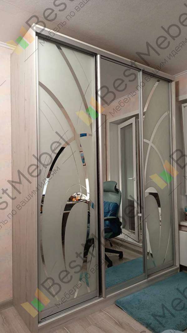 Шкаф-купе sk-002 BMS – модель с оригинальным дизайном. Все три зеркальных фасада декорированы пескоструйным рисунком. Дополнительная опция – точечная подсветка сделает пользование мебелью еще удобнее. Что касается внутреннего наполнения, то оно максимально вместительно и практично. Оно позволяют сложить бельё, повесить плащ, шубу или костюм. Дверки великолепно ездят по своим направляющим и не создают постороннего звука. Купить шкаф-купе sk-002 BMS можете в нашем магазине по низкой цене.