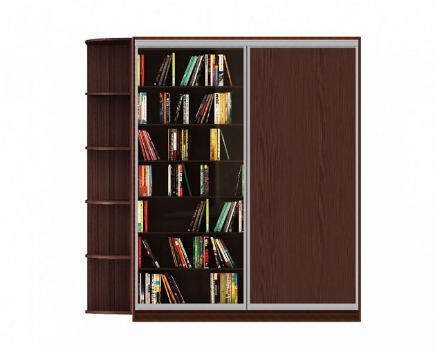 Шкаф-купе Тайп 20 BMS поможет разместить не только книги из домашней библиотеки, но и документы, бытовые вещи, предметы декора. Комбинированная модель оборудована отделением-купе со стеклянной и глухой дверцами и дополнена радиусным торцевым стеллажом. Просторные застекленные полки обеспечат книгам отличную обзорность и помогут вам быстро найти нужное издание. Купить Шкаф-купе Тайп 20 BMS, выполненный в насыщенных древесных тонах, приглашаем в наш интернет-магазин.