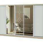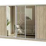 Шкаф-купе Виват – это стильное и вместительное изделие для хранения всех ваших вещей. Конструкция предусматривает наличие большого количества полочек разного размера и отделений со штангами для вешалок. Фасад шкафа изготавливается из ламинированной ДСП и зеркал с пескоструйным рисунком. Пятидверный шкаф – это отличный вариант для большой семьи. При заказе на нашем сайте можно выбрать цвет ДСП, чтобы изделие гармонично влилось в стилистику помещения.