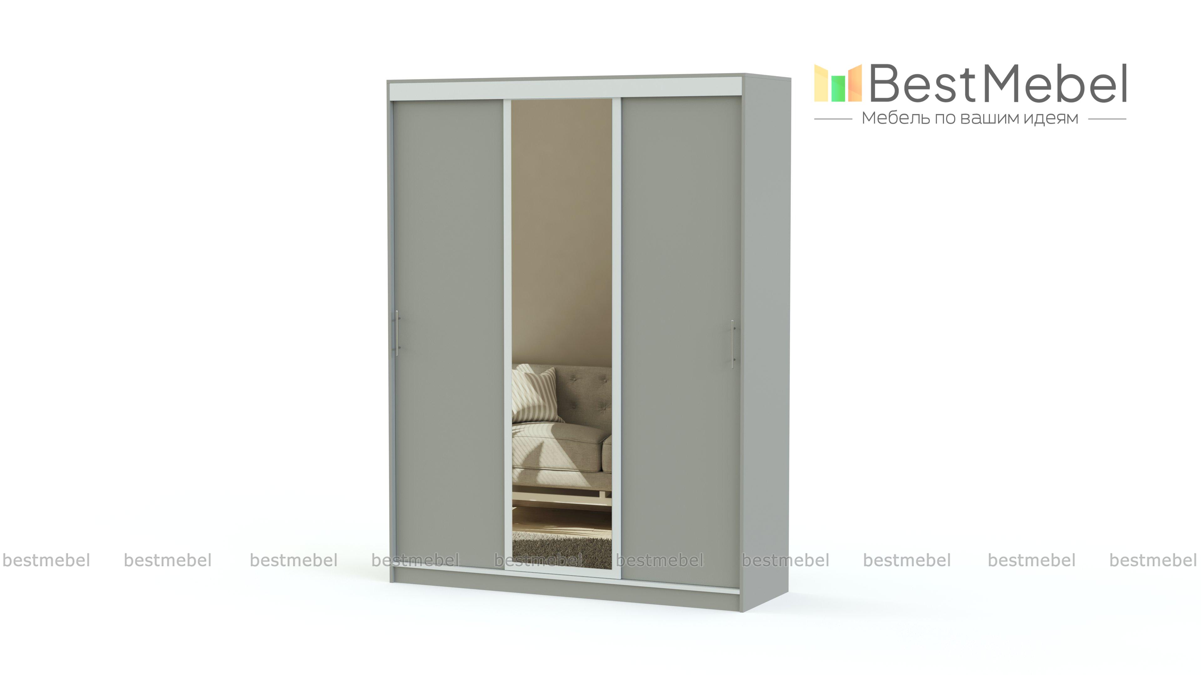 Шкаф-купе Уют 8 BMS гармонично вписывается в окружающую обстановку благодаря лаконичной стильной отделке и нейтральной палитре. На боковые створки установлены для удобства ручки-рейлинги, а центральная представляет собой полноценное ростовое зеркало. Габариты и наполнение трехдверной модели позволяют разместить как предметы гардероба, так и домашний текстиль. Купить шкаф-купе Уют 8 BMS вы всегда сможете в нашем интернет-магазине с выбором цвета и размеров.
