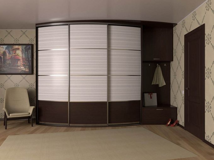 Шкаф радиусный Молли 3 BMS станет частью комфортной и эстетичной входной зоны. Трехдверная модель с наружным изгибом будет гармонично смотреться в просторном помещении и поможет компактно разместить одежду, обувь и аксессуары. Дополненный открытой вешалкой с обувницей и антресолью, шкаф станет интересной альтернативой классическим прихожим. В оформлении фасадов сочетаются древесные оттенки и белый цвет с неброским рисунком. Купить Шкаф радиусный Молли 3 BMS вы сможете в нашем интернет-магазине, подобрав необходимые параметры.