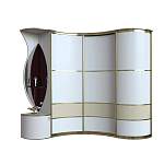 Угловой радиусный шкаф-купе Скай BMS с эффектной волнообразной формой фасада подчеркнет эксклюзивность интерьера спальни или прихожей. Угловая конструкция, выгодно использующая пространство, объединила вогнутое отделение-купе, выпуклую распашную секцию и торцевой элемент с тумбой и фигурно вырезанным зеркалом со стеклополкой. Шкаф, выполненный в белом цвете с глянцевой вставкой, не только удобен для хранения гардероба и аксессуаров, но и станет настоящим украшением дома. Купить угловой радиусный шкаф-купе Скай BMS приглашаем в наш интернет-магазин.