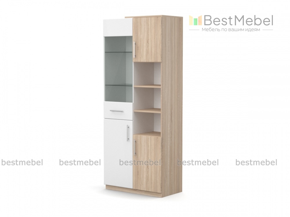 Книжный шкаф Этна 2 BMS – пример лаконичного и функционального современного дизайна. Модель органично впишется в интерьеры скандинавского стиля, минимализм и лофт, обустроив комфортное и визуально легкое пространство. Шкаф представляет собой сочетание двух встроенных друг в друга элементов – с витринным отделением и открытыми полками, особенно эффектных в разных оттенках, белом и древесном. Купить книжный шкаф Этна 2 BMS и компактно разместить книги, предметы декора и бытовые мелочи, вы сможете с помощью нашего интернет-магазина.