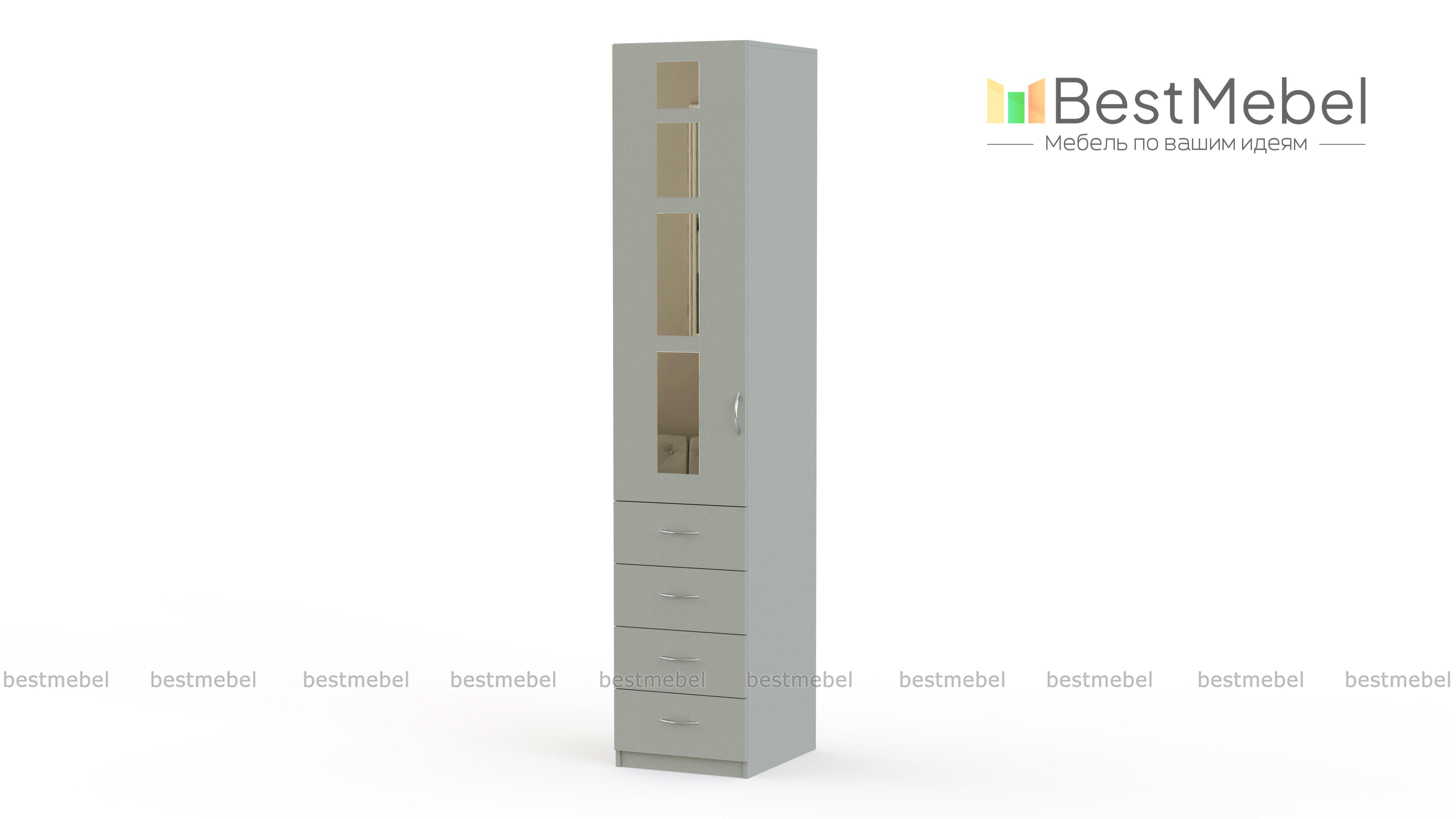 Распашной шкаф Паулина 22.1 BMS с геометричным зеркальным декором на фасаде отличается элегантным современным дизайном. Компактная по ширине модель станет практичным выбором для меблировки малогабаритных помещений, позволяя сэкономить пространство. Однодверный шкаф оборудован распашным отделением с полками и четырьмя выдвижными ящиками в нижней части. Купить распашной шкаф Паулина 22.1 BMS приглашаем к нам в интернет-магазин, подобрав оптимальное цветовое решение.