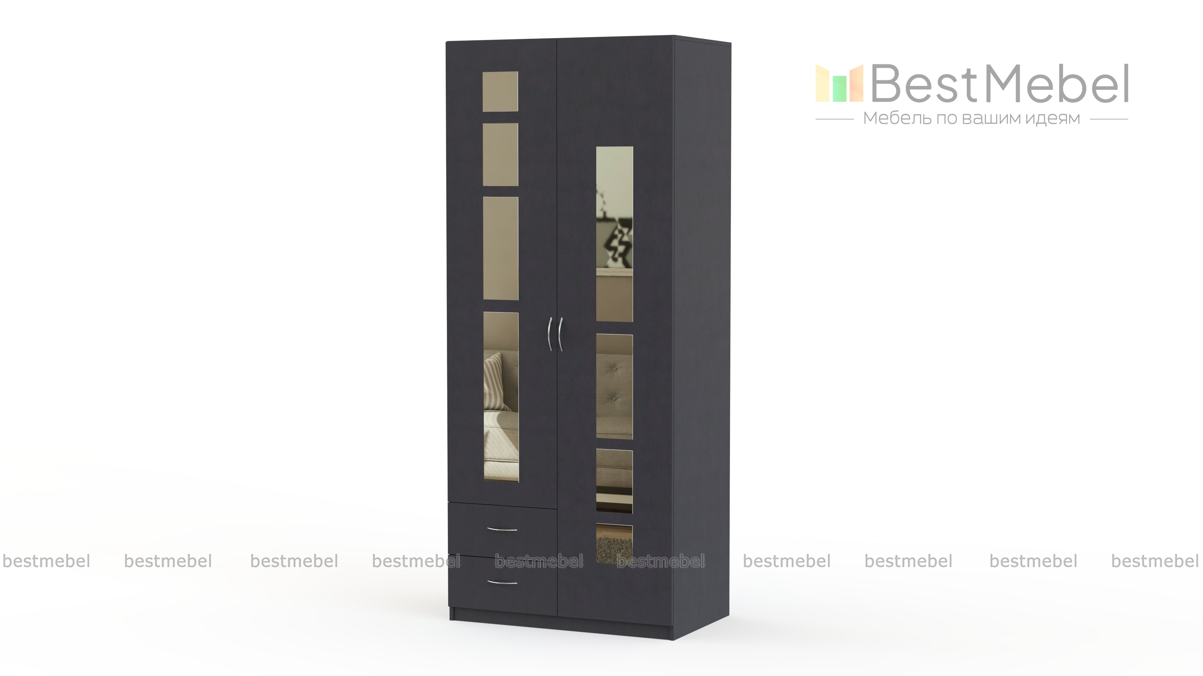 Распашной шкаф Паулина 50 BMS отличается практичной комбинированной конструкцией и оригинальным современным дизайном. Для удобного хранения одежды и постельных принадлежностей модель оборудована двухдверным платяным отделением и двумя выдвижными ящиками в нижней части. Шкаф выполняется в темных тонах на выбор и декорирован по фасаду геометричными зеркальными накладками. Купить распашной шкаф Паулина 50 BMS вы сможете в нашем интернет-магазине по доступной цене.