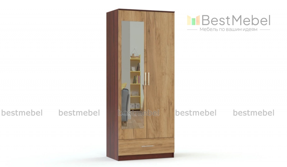 Распашной шкаф Сандра BMS станет практичным выбором для помещений ограниченной площади. Двухдверная модель отличается небольшой шириной, а хорошую вместительность ей обеспечивает дополнение в виде просторного выдвижного ящика. На фасаде шкафа, выполненном в натуральных древесных тонах, располагается ростовое зеркало, дверцы и ящик оснащены удобными в эксплуатации ручками-рейлингами. Купить распашной шкаф Сандра BMS вы всегда сможете в нашем интернет-магазине по демократичной цене.