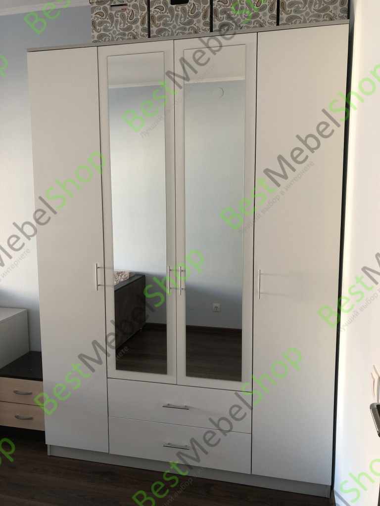 Шкаф 4.2. Шатурский BMS сочетает в себе современную лаконичность и функциональность. На фоне темного корпуса эффектно выделяется светлый фасад, центральные дверцы дополнены незаменимыми в интерьере спальни или прихожей зеркалами. Четырехдверная модель оборудована платяным отделением, бельевыми полками и двумя выдвижными ящиками для аксессуаров или мелкого трикотажа. Купить шкаф 4.2. Шатурский BMS вы сможете в нашем интернет-магазине, подобрав размеры, цвет и фурнитуру.