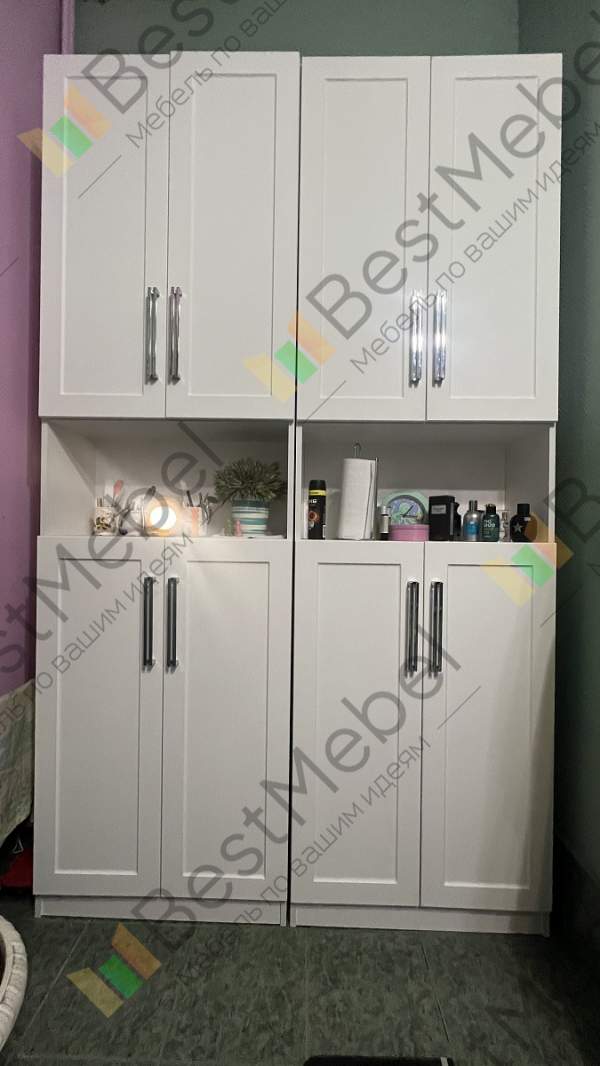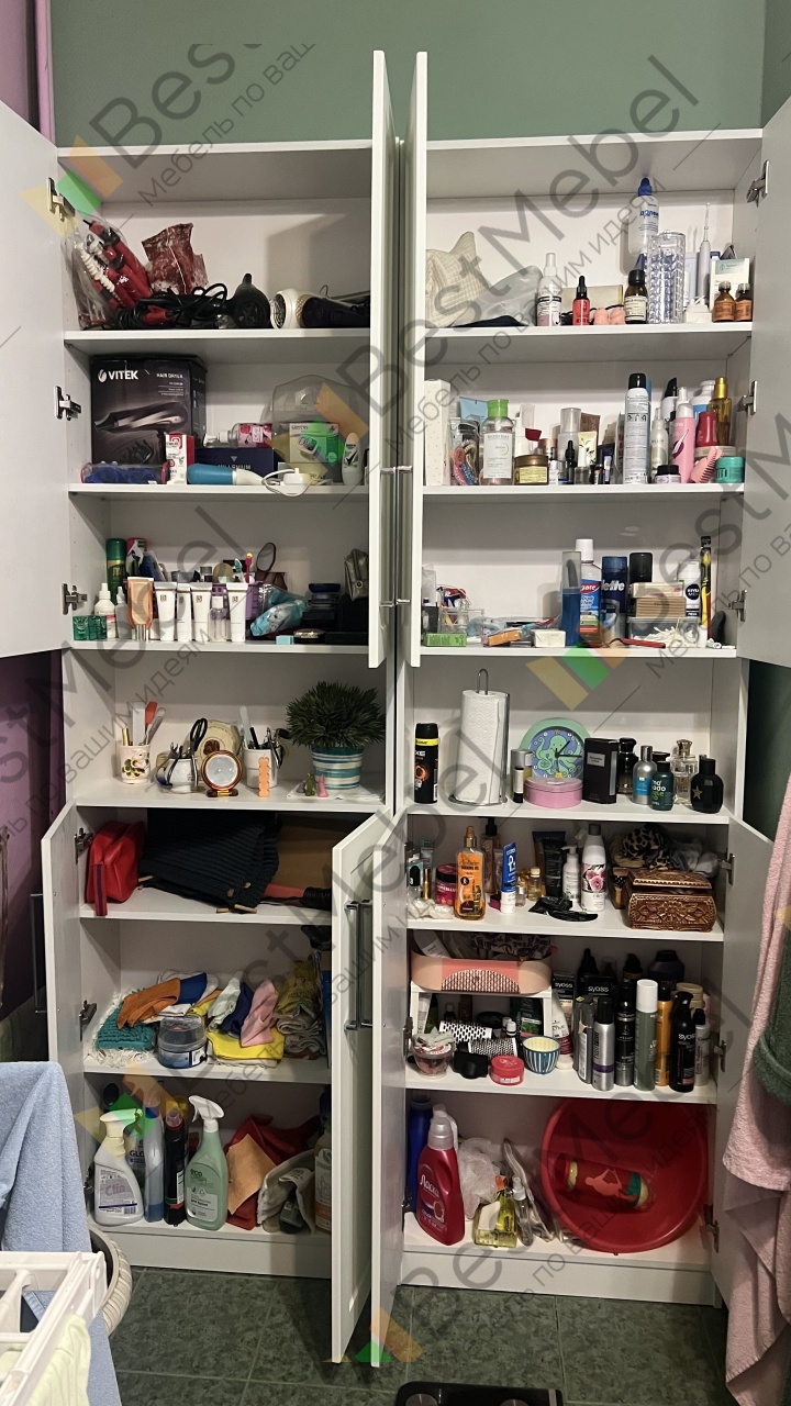 Шкаф прекрасный. Очень удобный. Купили два в нишу в прихожей. Подогнали точно по размерам. Теперь вся бытовуха хранится там. Поверхность софт-тач очень приятная. Смотрится шкаф отлично. Нравится всем, включая гостей.Из минусов - "инструкция". Но собирать было несложно. Все отверстия сделаны ровно, буквально идеально.Работа магазина на высоте. Все четко по заказу и доставке.